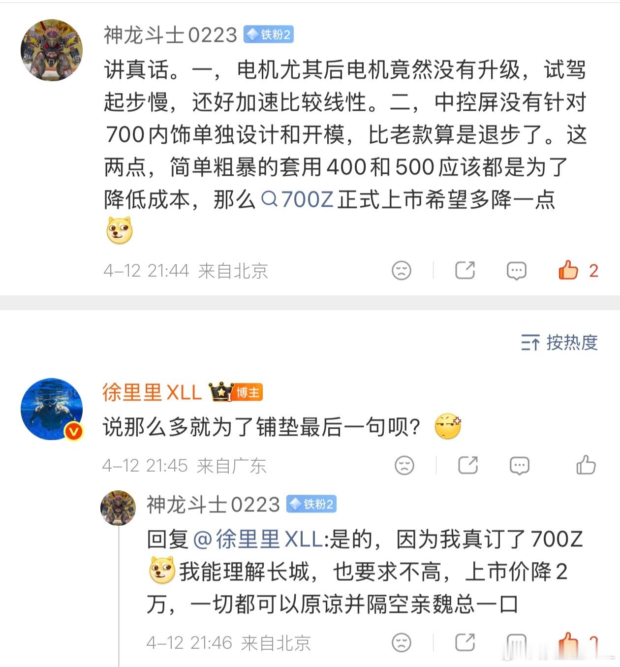坦克700的订单应该真的不少。我让你们挑坦克700的缺点,不一会就成功钓出来两个