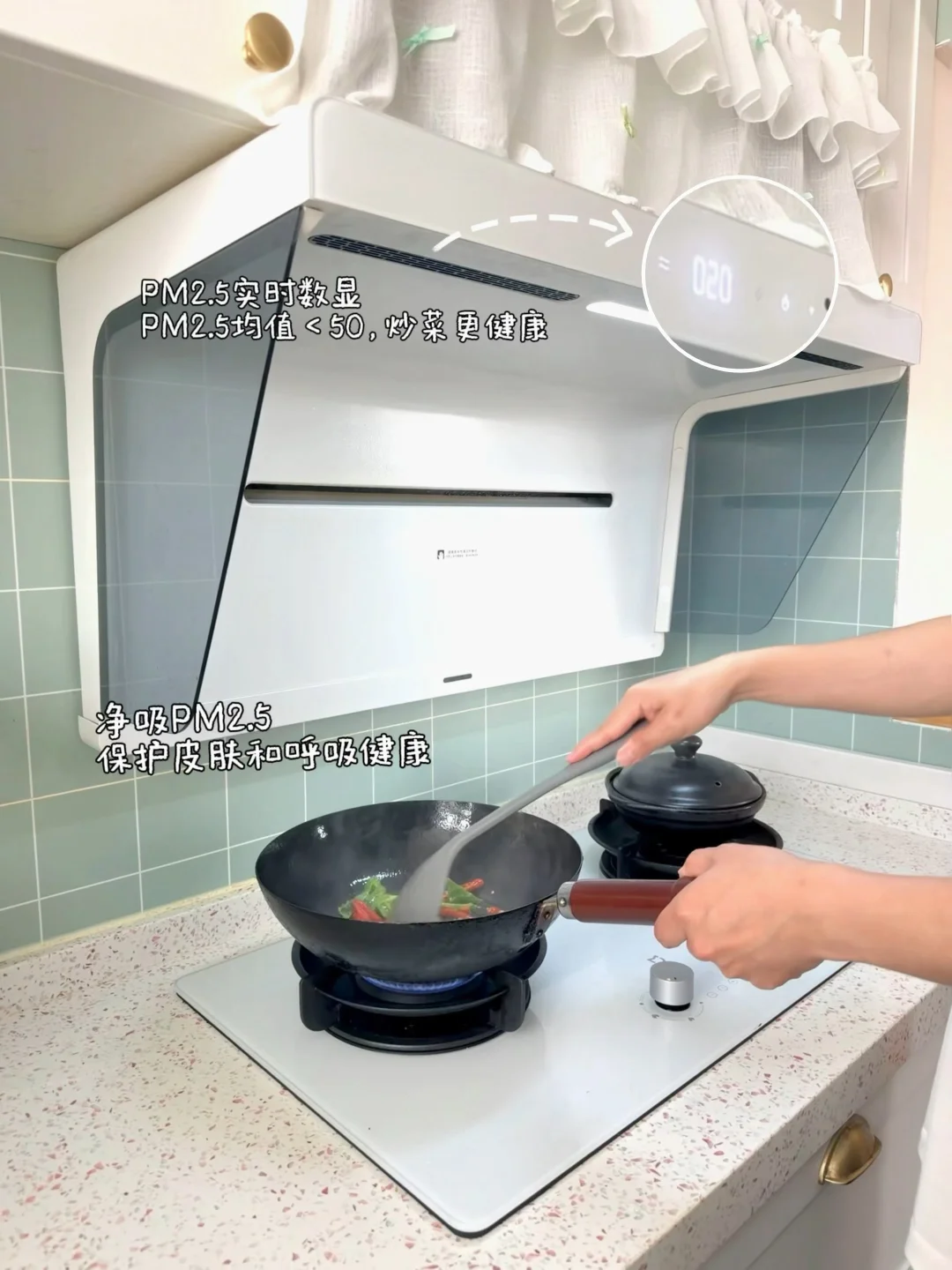 屏幕会实时数显PM2.5数值,净烟效果一目了然。每次炒菜都能稳稳控制在50以下,这种看得见的效果,让人真的很安心☺️。