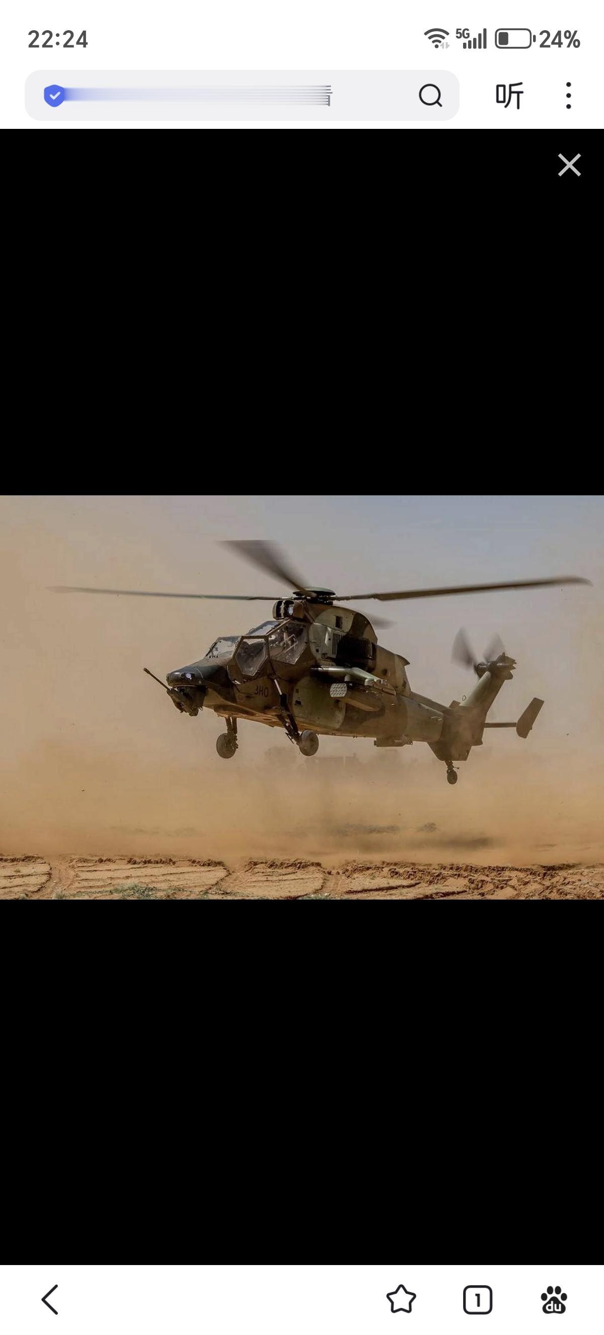 法国陆军虎式攻击直升机在阿拉伯联合酋长国执行作战任务期间首次取得空对空战果,使用