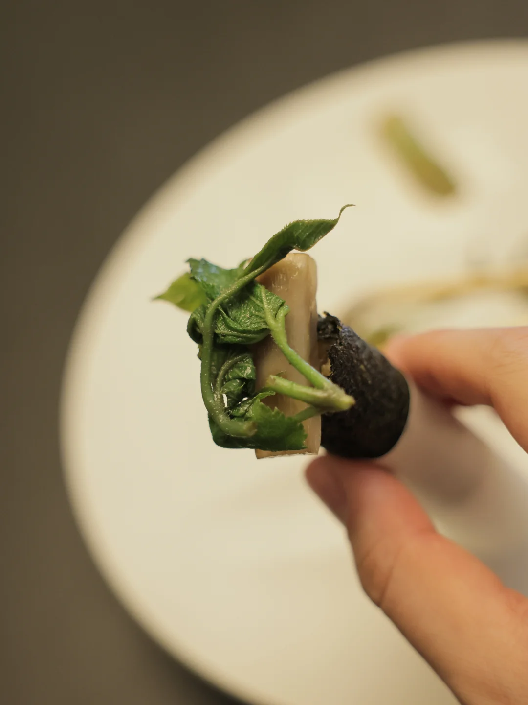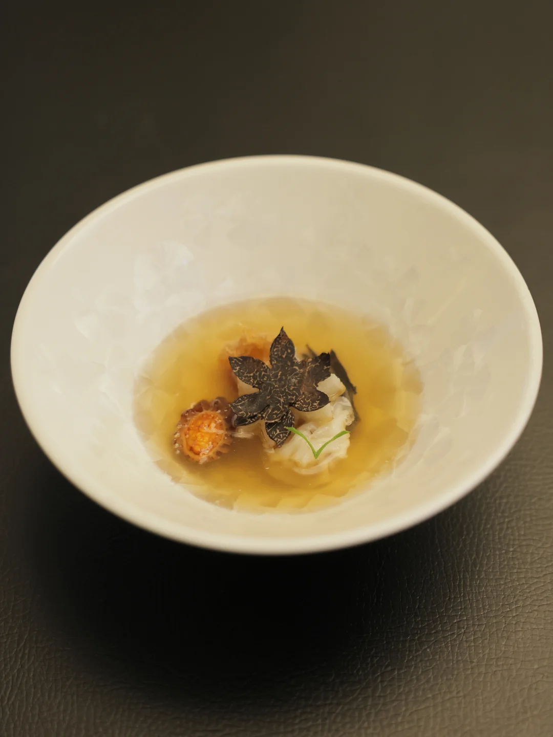 里面的料依旧五花八门,有荞麦饼、炸蘑菇和蘑菇卷,增加了口感的复杂性的同时,也在味觉层次上,结合了松露的风味,将菌类的泥土气息自然过渡到牛肉汤底到清甜。