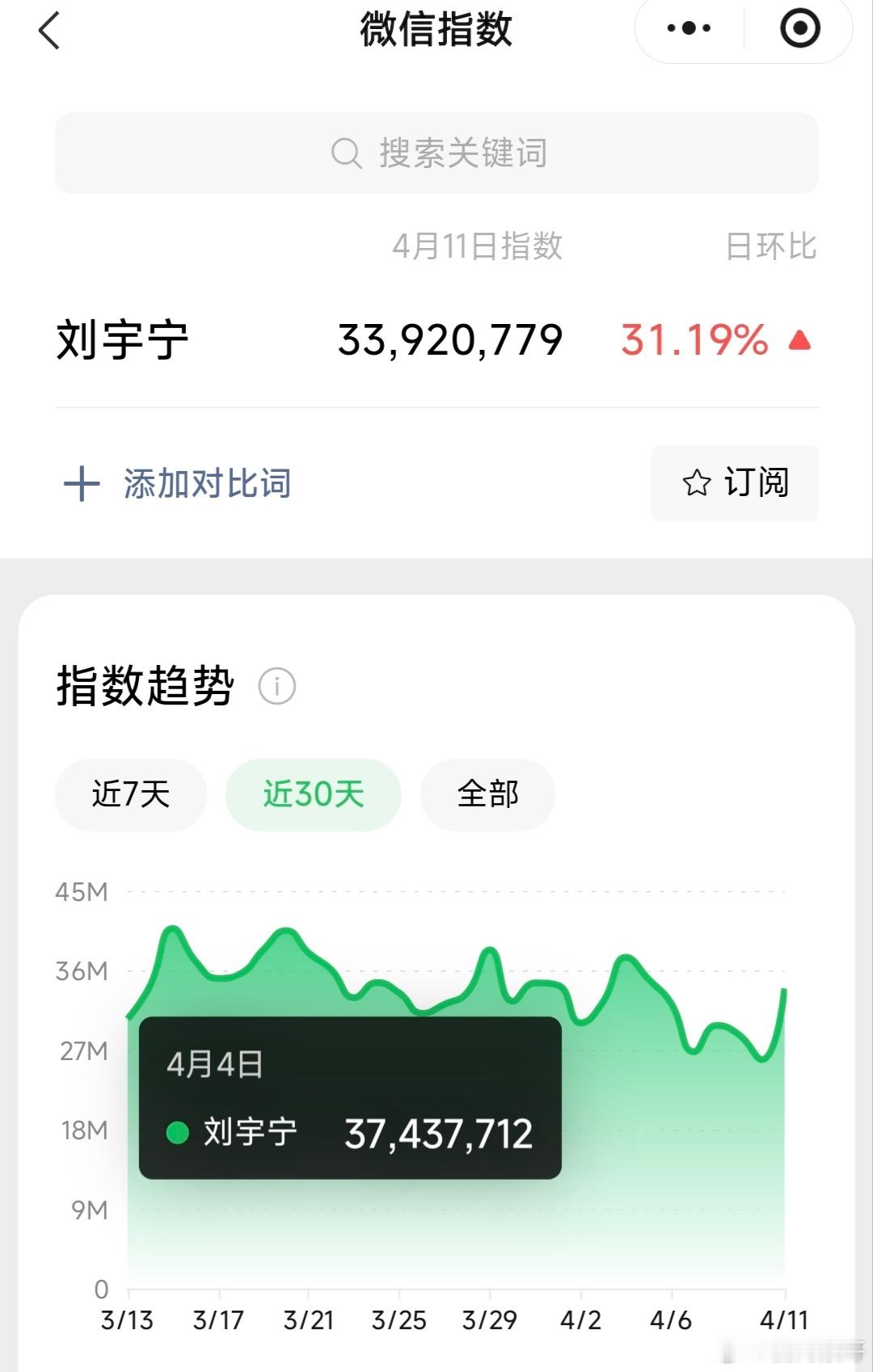 看了一下刘宇宁下沉平台的数据,很夸张噢近一个月百指平均都在2w6以上,属于艺人超
