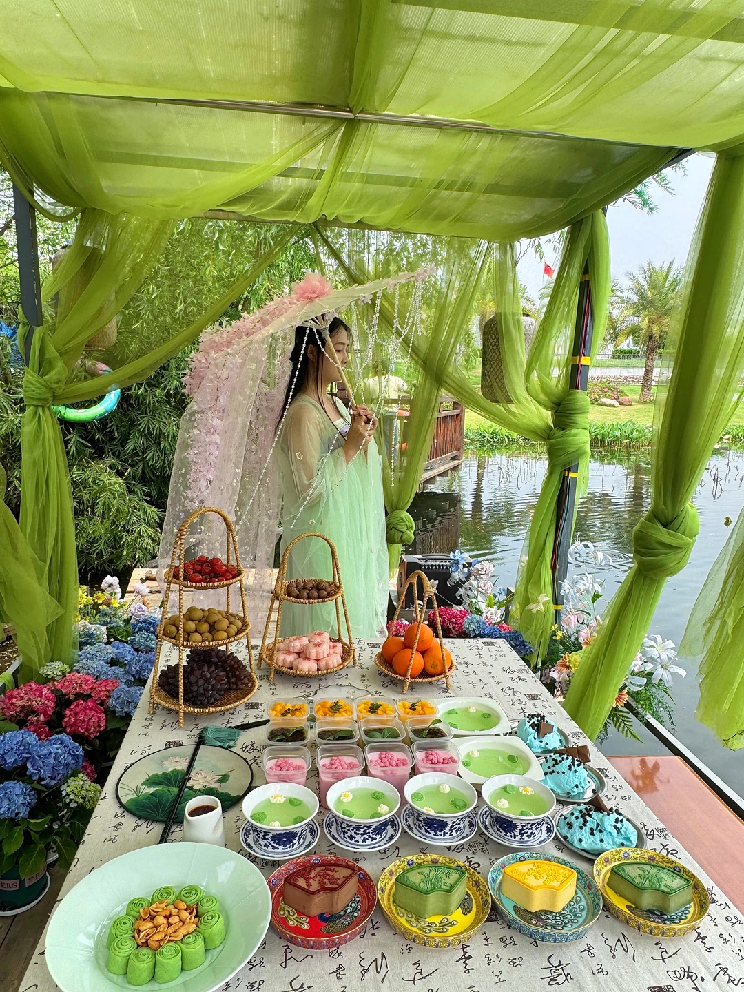 湖光山色,坐在渔船上的中式下午茶~