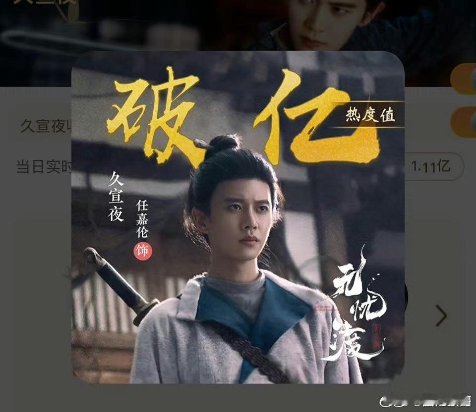 昨天是任嘉伦生日+今天是无忧渡开播一周年+久宣夜角色热度值再破亿+无忧渡再进入?