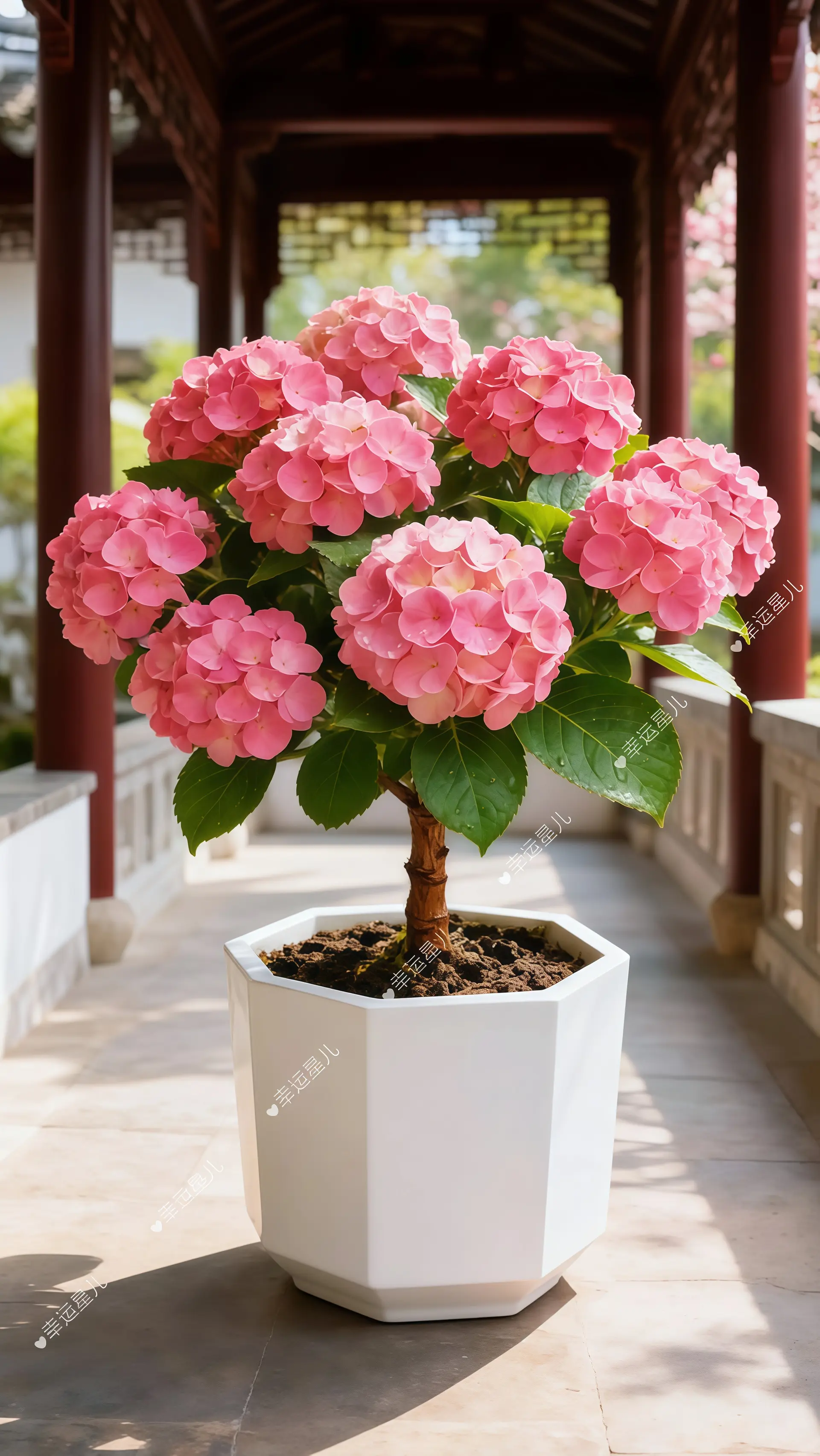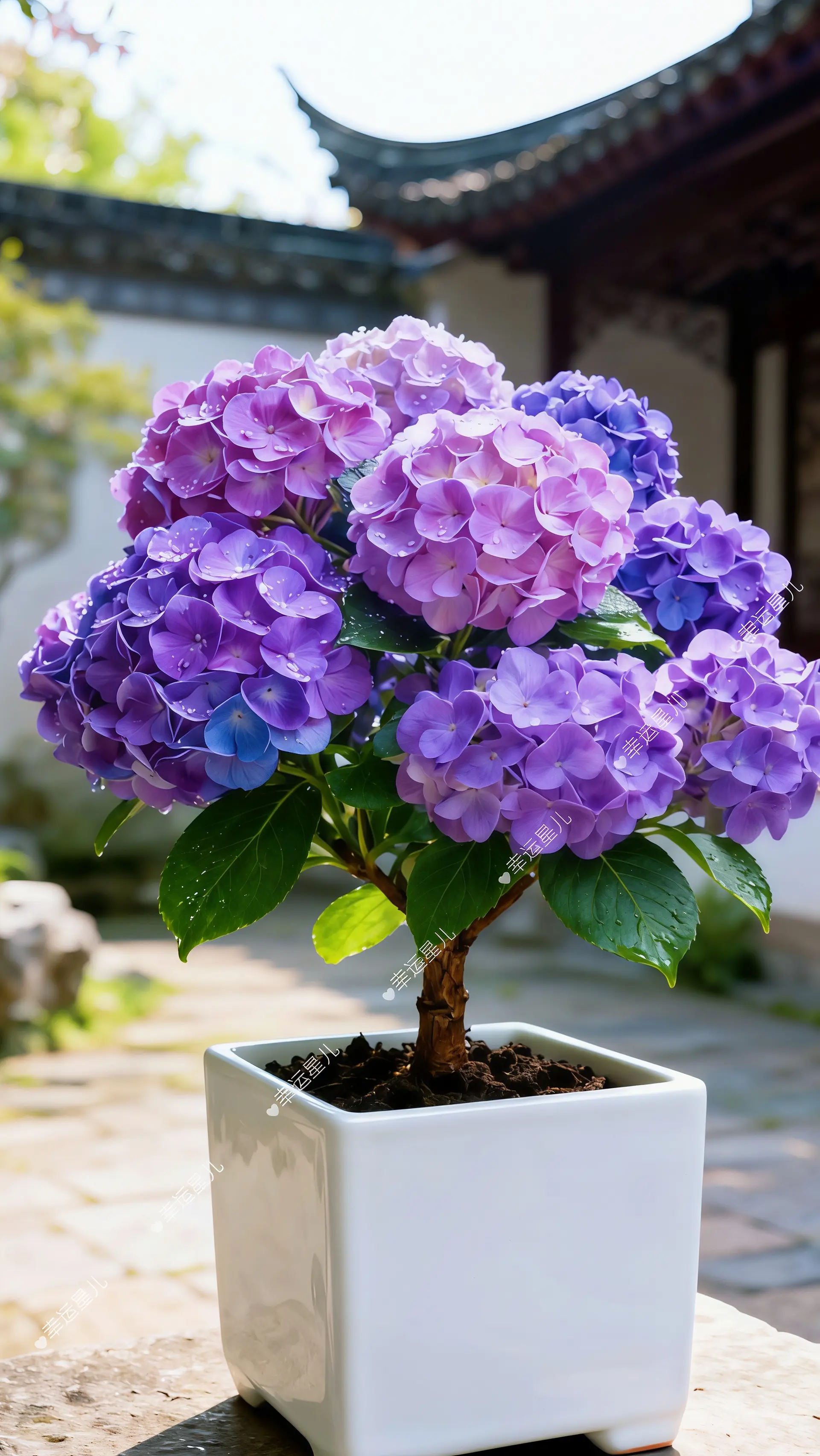 春风拂面,繁花满枝,绣球花热烈绽放。