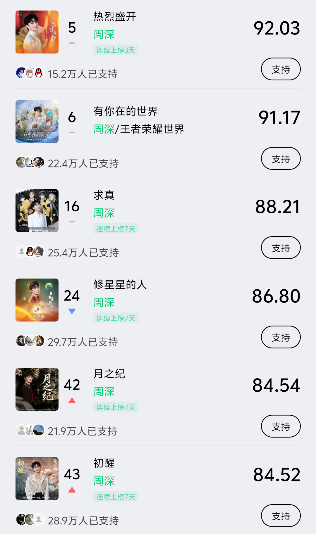 周深 📣 4.12 巅峰潮流 📣米米们晚上好,抽空来每歌做6个动作路径:Q音-乐馆-排行-潮流巅峰
