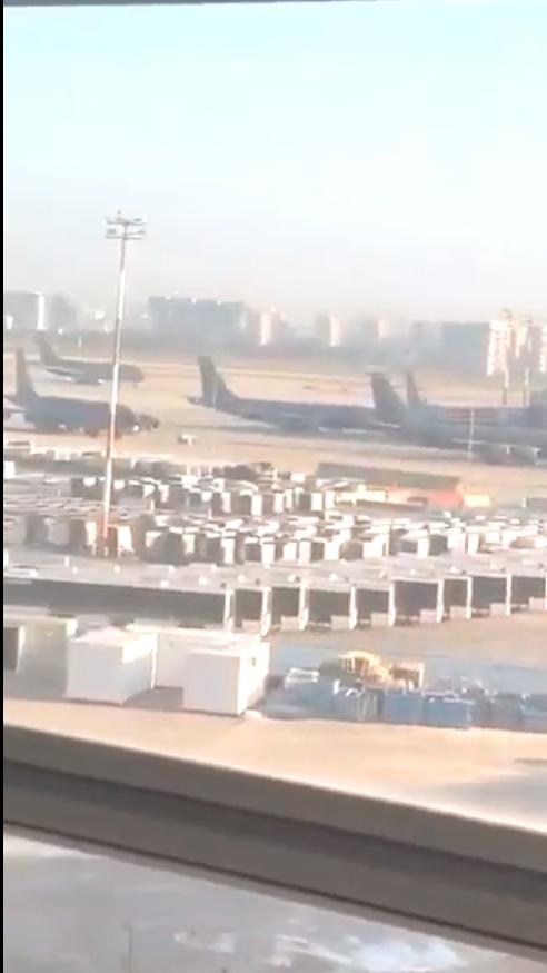 同时,一架从中东返回的美国空军KC-135加油机,机身布满多处修补过的弹片孔,很可能是在伊朗对沙特苏丹王子空军基地发动的袭击中受损。这架美军加油机,是在英国米尔登霍尔皇家空军基地被发现的。整架加油机上,遍布着数十个修补过的弹孔,这些弹孔是由伊朗对沙特苏丹王子空军基地的导弹,无人机袭击所造成的。目前,这架加油机已准备飞往美国进行维修。这架美军加油机,被伊朗导弹炸的挺狠,驾驶舱都给炸了,美军这算是先紧急补一下破洞,恢复一下飞行设备,剩下的等到了美国本土,再精修补漆。这弹孔密度一看就是集束弹头打的。伊朗导弹数量还是无法完成洗地,哪怕是用蜂群自杀式无人机,都不可能让美军大型飞机幸存。