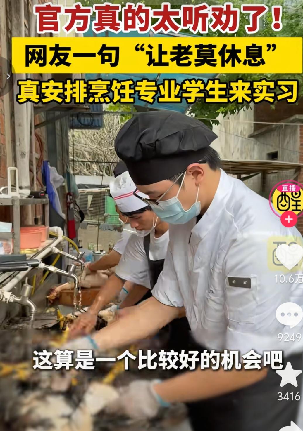 佛山这执行力度实在是太高了,老莫喊太累了,他们直接就安排烹饪专业的学生来学习,提