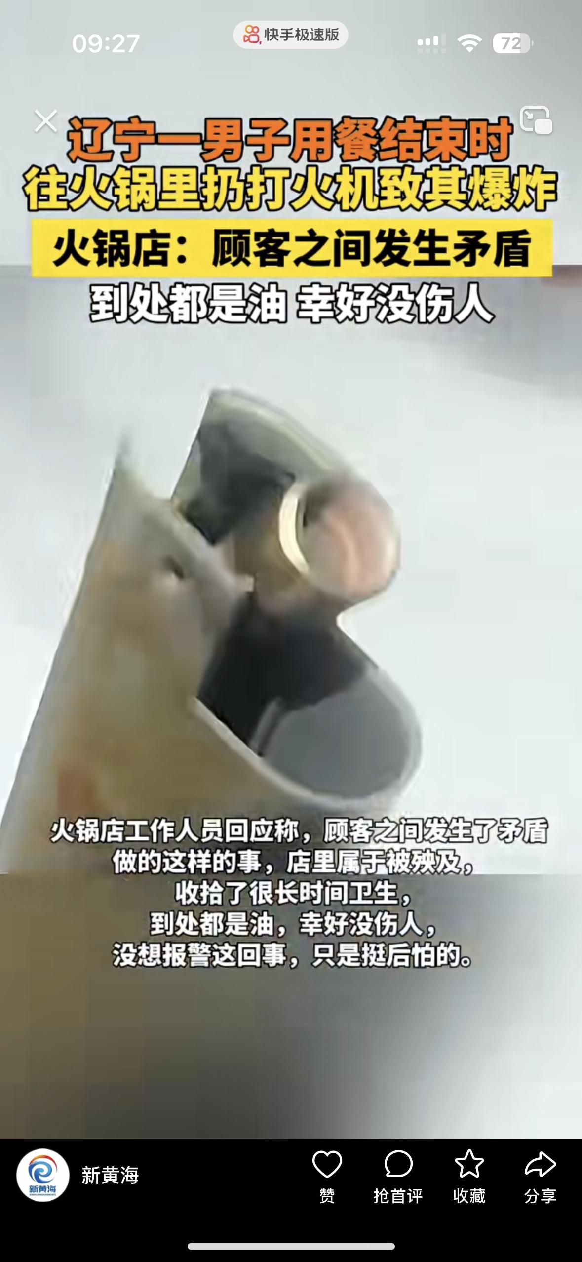 在沈阳一家火锅店里,两位顾客发生了口角矛盾,争吵过后的男子恼羞成怒,竟然在走的时候把打火机扔在了滚烫沸腾的火锅里。