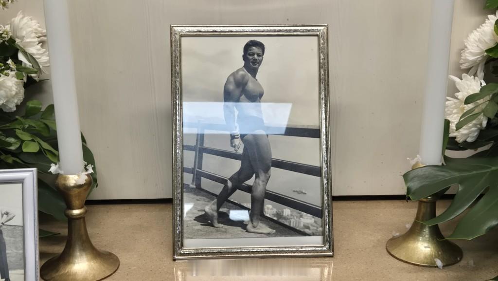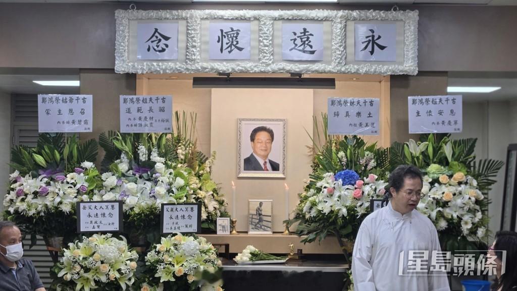 郑雷遗照穿黑西装神情和蔼根据资料,郑雷生于1944年,但香港动作指导、男演员吴育枢就指郑雷应该比资料显示的大10年。郑雷以健美先生身份出身,所以在灵堂中除了其身穿黑色西装、结上红色领带的遗照外,更放有他赤裸上身、尽显肌肉的照片。郑雷的一对子女郑子斌和郑嘉宝,都有跟另一半送上花牌,写上父亲大人冥鉴 永远怀念和岳父大人冥鉴 永远怀念。
