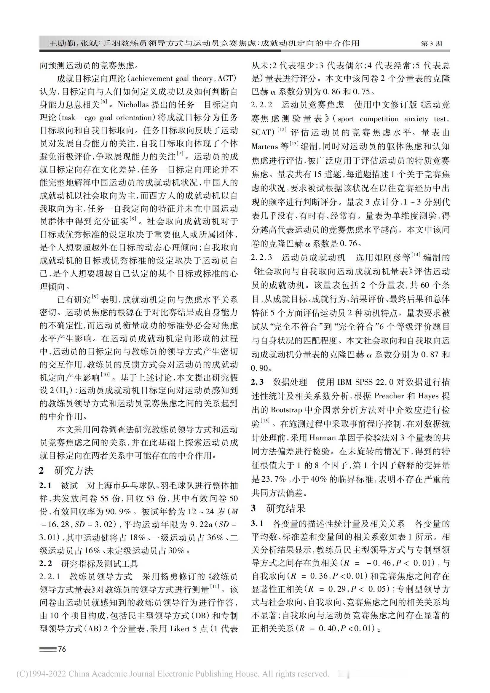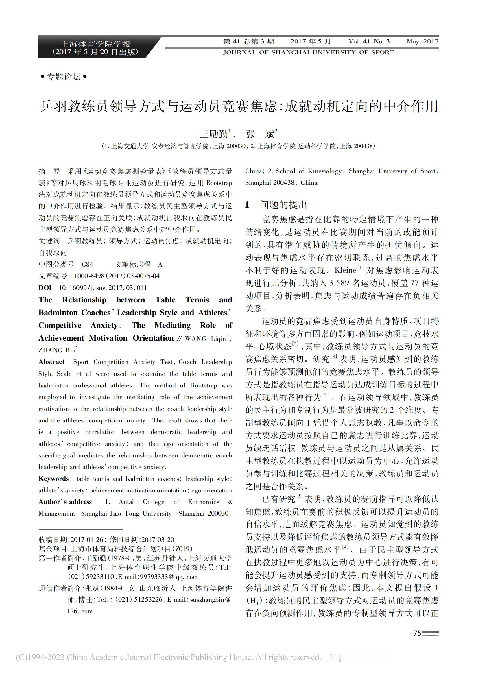 乒羽教练员领导方式与运动员竞赛焦虑:成就动机定向的中介作用分享王励勤论文我建议朋