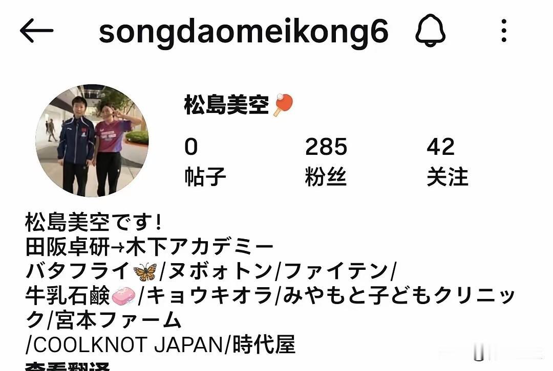 松岛美空开通了ins,居然用的是和孙颖莎的合影作为头像!