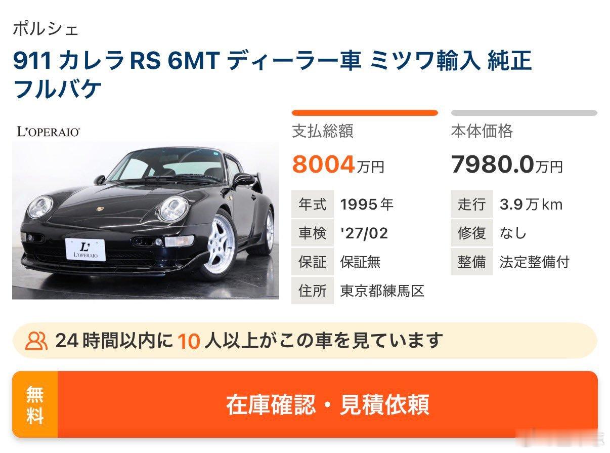 如果我中了1500万,会买什么车?应该会是993。这两年964已经被炒到天花板,无论普通Carrera 还是各种稀有版本,几乎没有捡漏空间。反而993作为最后一代空冷,在技术完成度、日常可用性、以及纯粹机械感之间达到了微妙的平衡。你很难再找到一台车,既保留了风冷时代的原始味道,又不像更老的车型那样需要过多妥协。所以我觉得993尤其像RS Club Sport这种限量版本,哪怕叫价8000万日元,目前行情也是被低估的。员工中了1500万彩票后直接离职