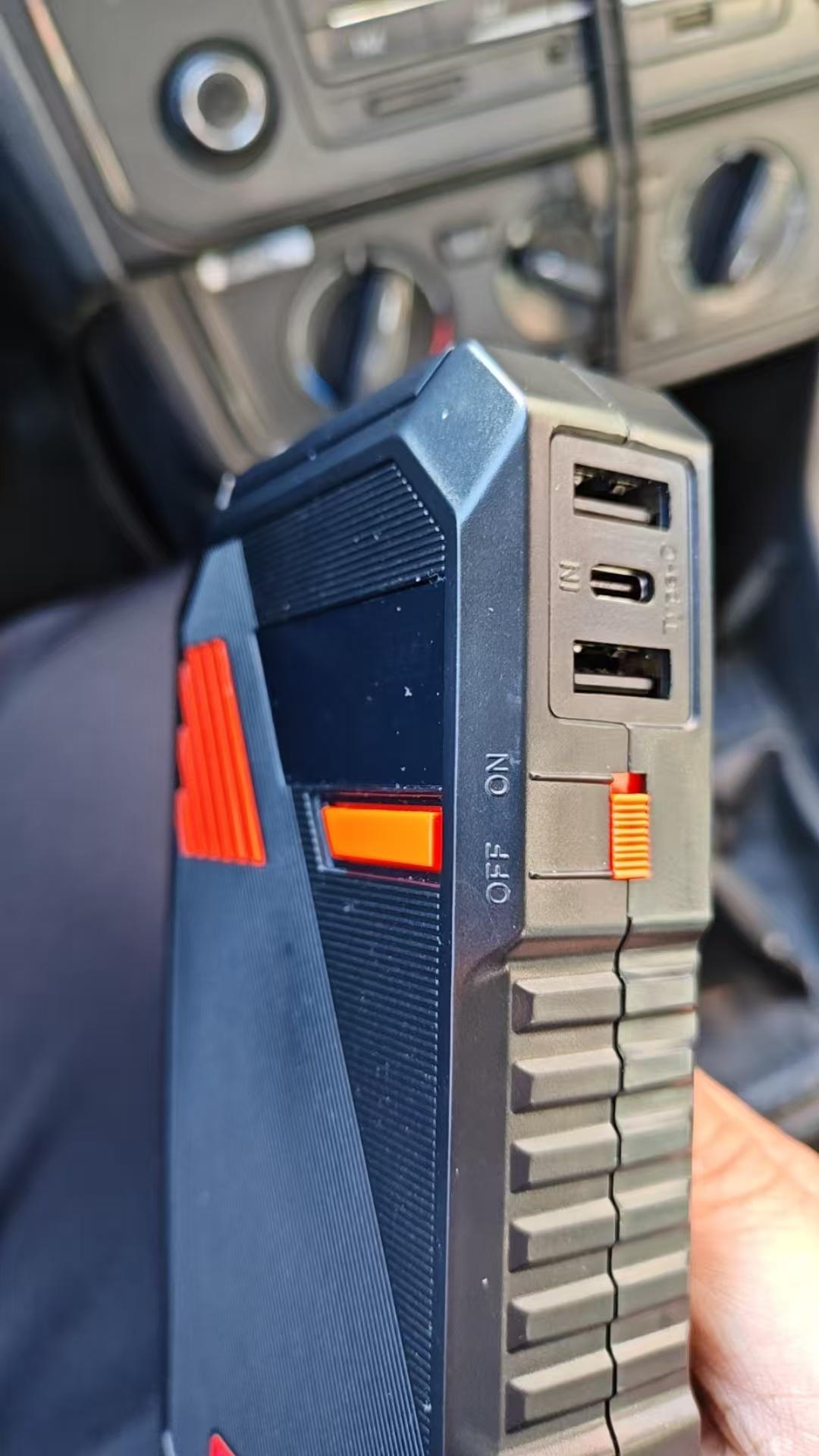 我翻出车里的汽车应急启动电源,它不是什么高科技玩意,就是个带夹子的充电宝,但比充电宝大多了。能打火,能给胎充气,夜里修车时还能当手电用,爆闪模式照得雪地跟白天似的。我试过用它给相机、头灯、对讲机一起充,12V口接营地灯,5V口插手机,19V口还带了个老式笔记本的接口,真插上了就能用。