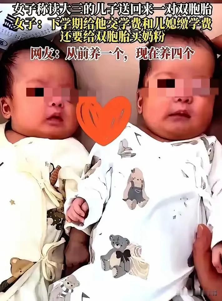 大三男生抱回双胞胎儿子,爹妈震惊“哪来的?”儿子说“我跟女朋友谈了三年,她前几天生了。”男生不仅带回两个孙子,还把下学期的学费和奶粉钱给奶奶列了出来。