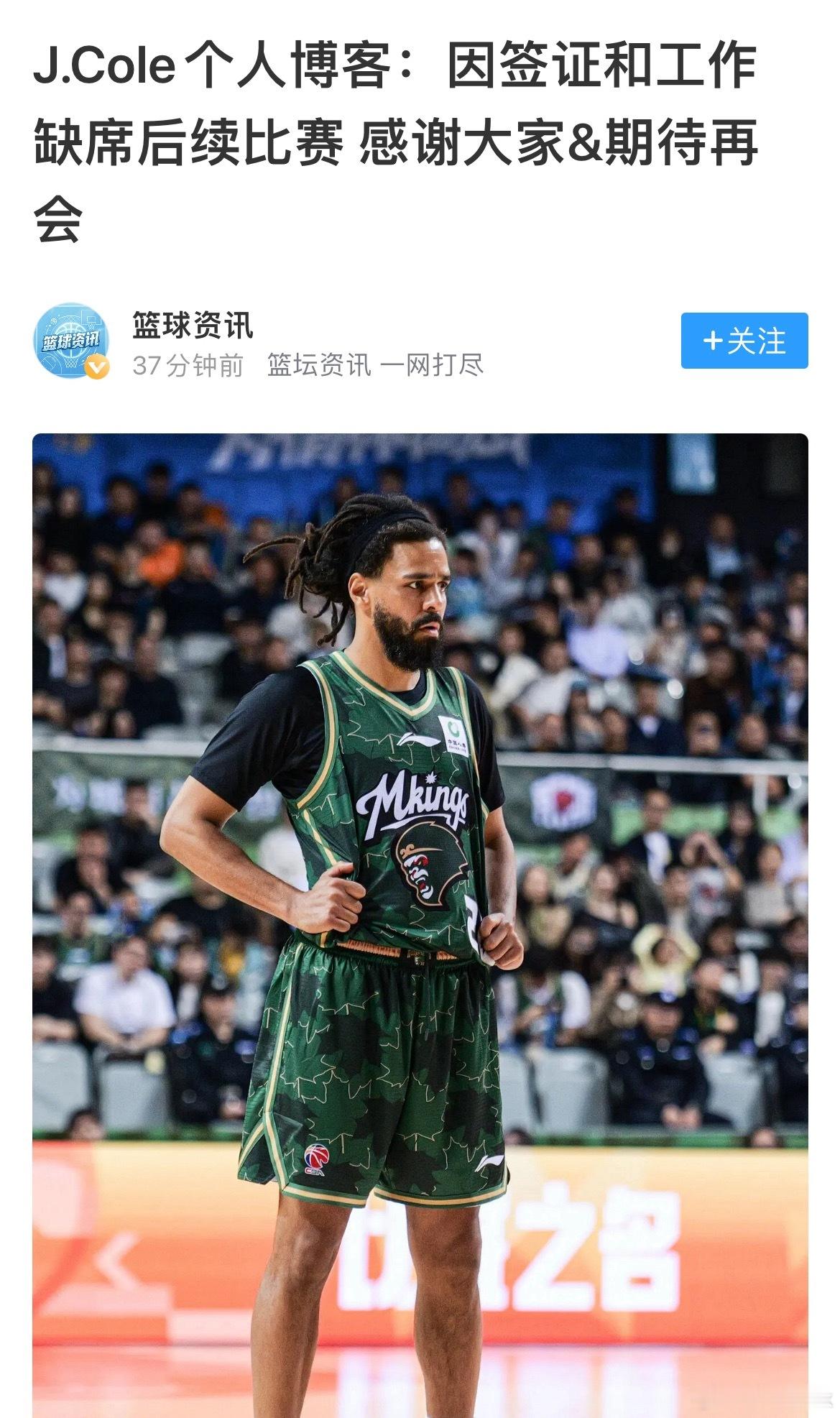 打了一场就匆匆的走了,欢迎再来中国j.cole加盟cba首秀