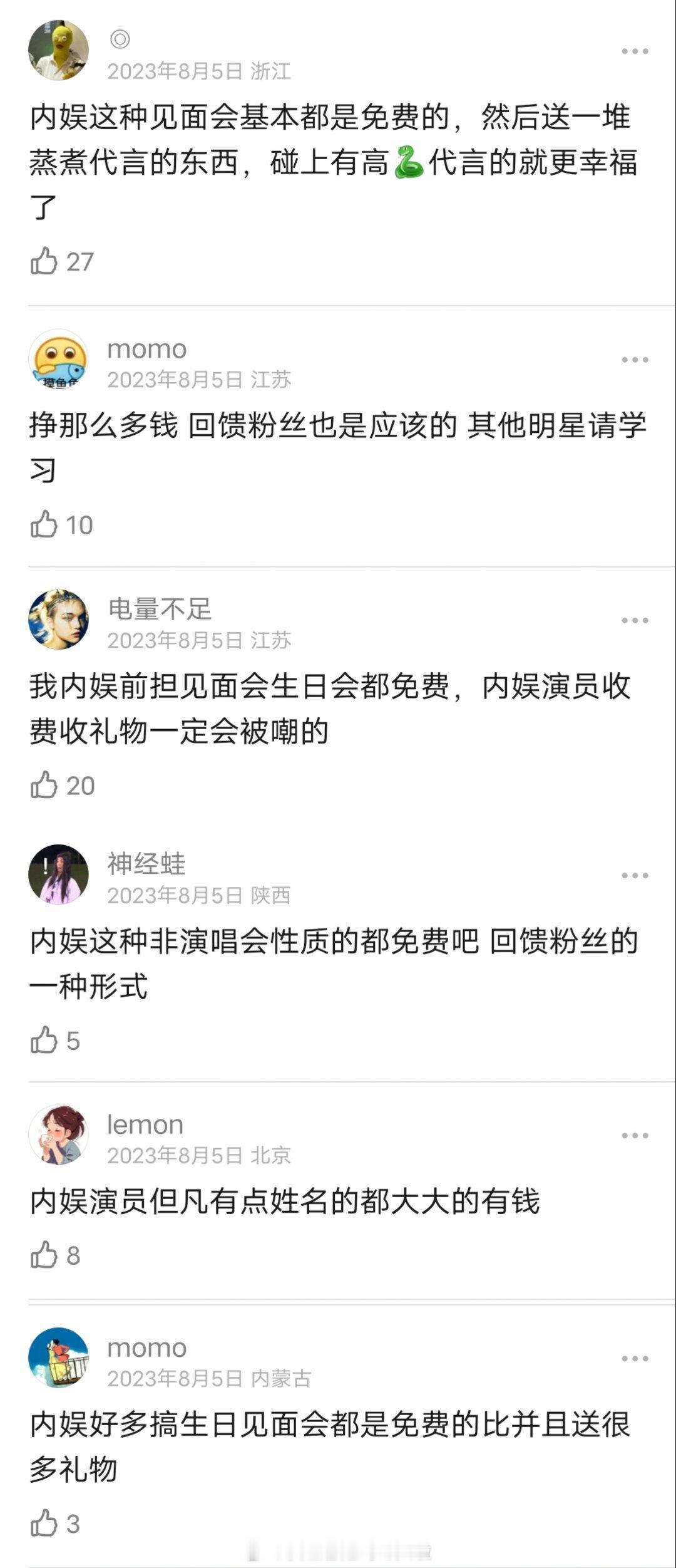 林一今年见面会票价480-880,作为糊生,这个价格怎么样?刷到之前23年的林一见面会,免费门票,送各种周边,还有车接车送的服务。印象中内娱明星开生日会或者粉丝见面会大部分都是免费的吧,非演唱会性质,算是回馈粉丝的一种形式,收门票钱的话反而会被审判。