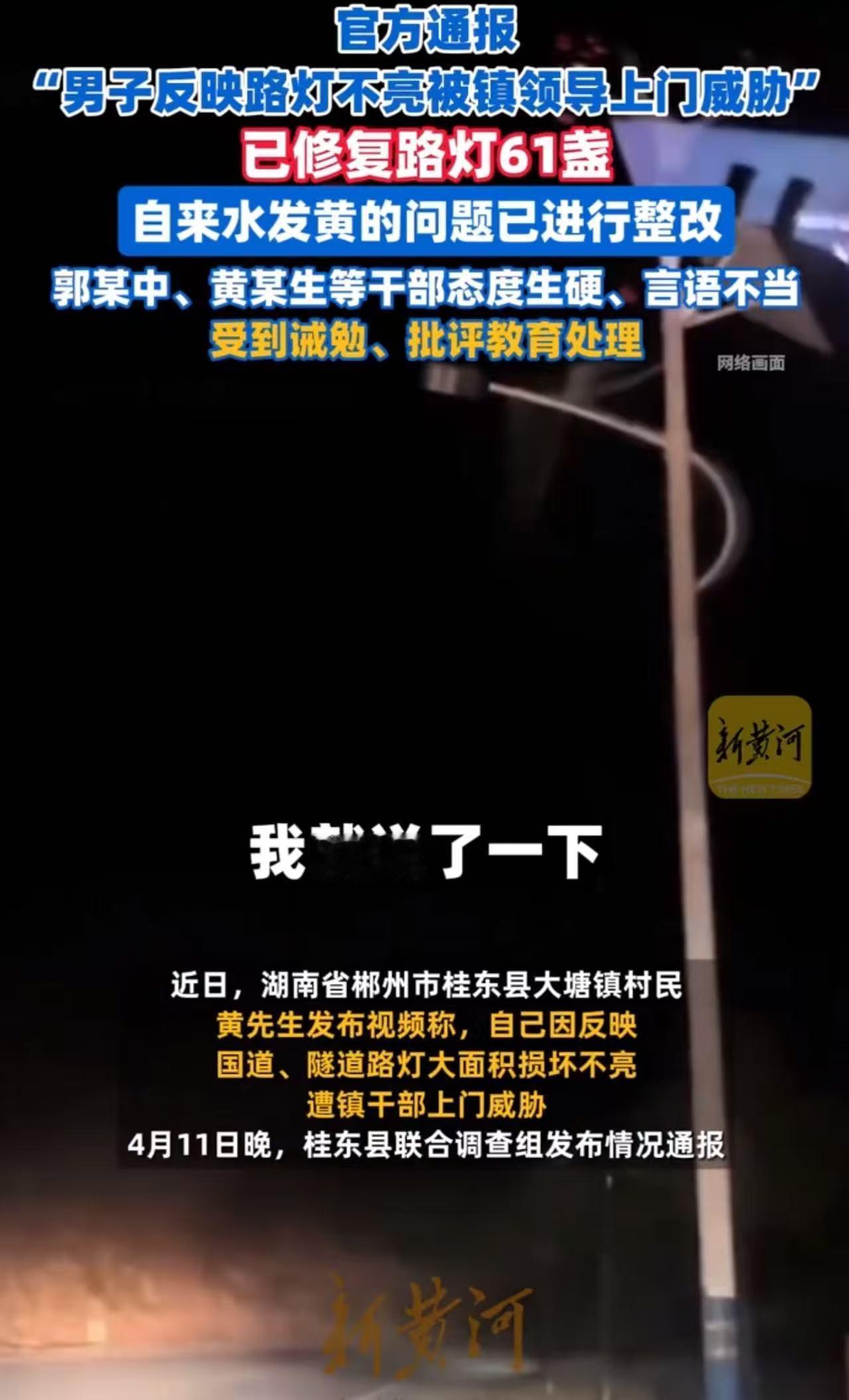 “这下闹大了!”湖南郴州,村民反映路灯不亮,自来水发黄,遭镇领导和民警上门威胁!男子:“要把我带到派出所先关15天!这样谁敢反映问题?”官方雷霆出手:“个别干部存在言语不当等情形, 1人被诫勉处理,5人被批评教育。”