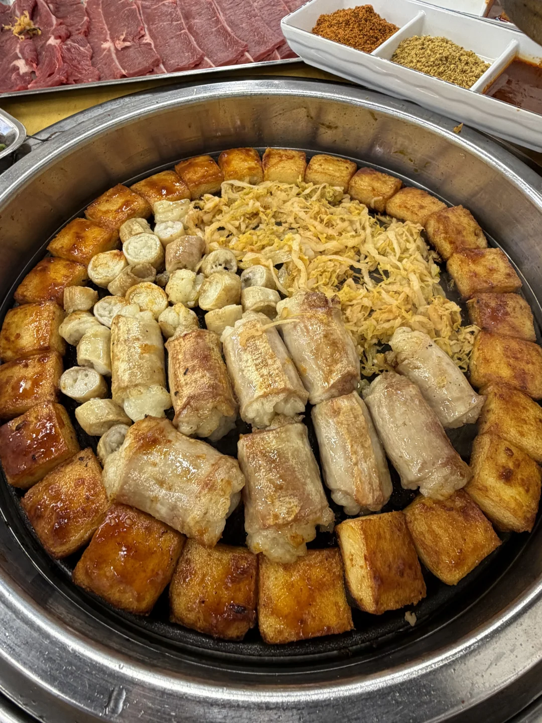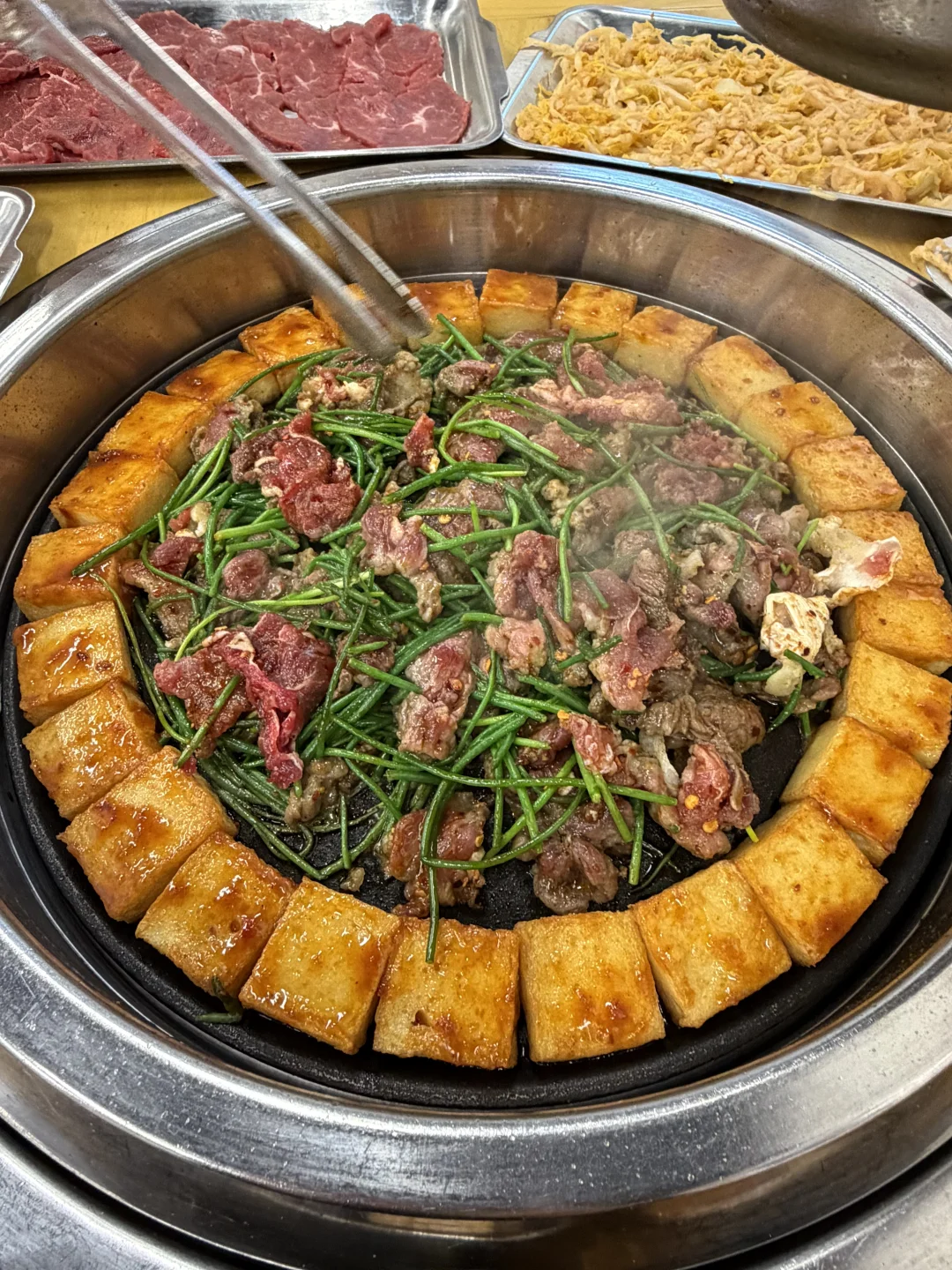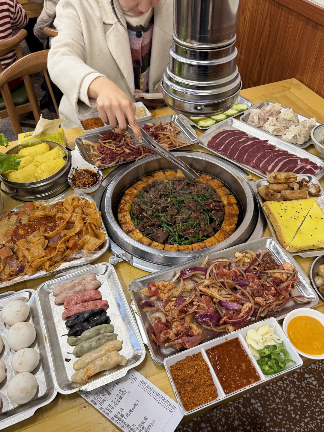 正宗的齐齐哈尔烤肉,肉都是现切,炭火现烤。别提有多香了!!每次四个人吃A下来差不多50左右!吃爽了👛还不心疼!!