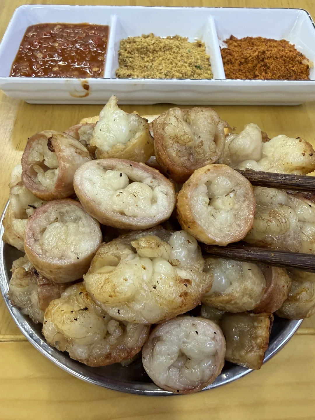 啊啊啊啊谁能拒绝这一口烤牛肠啊!!!个人很喜欢把外面烤的焦一点,配上辣椒面一起!!!就问谁能不爱?
