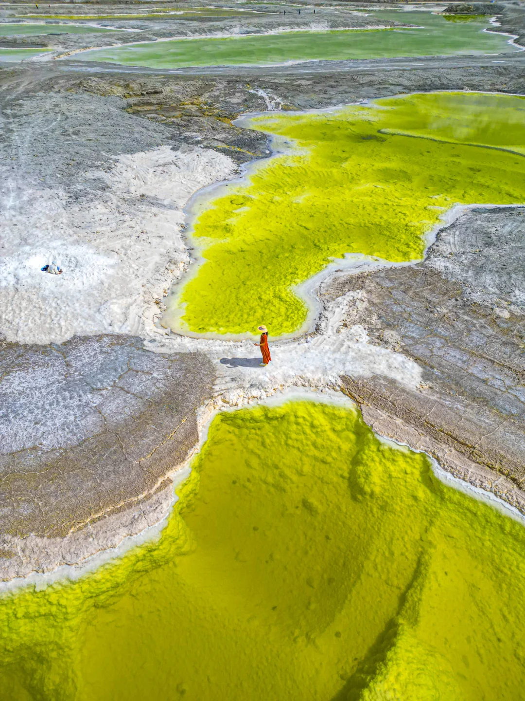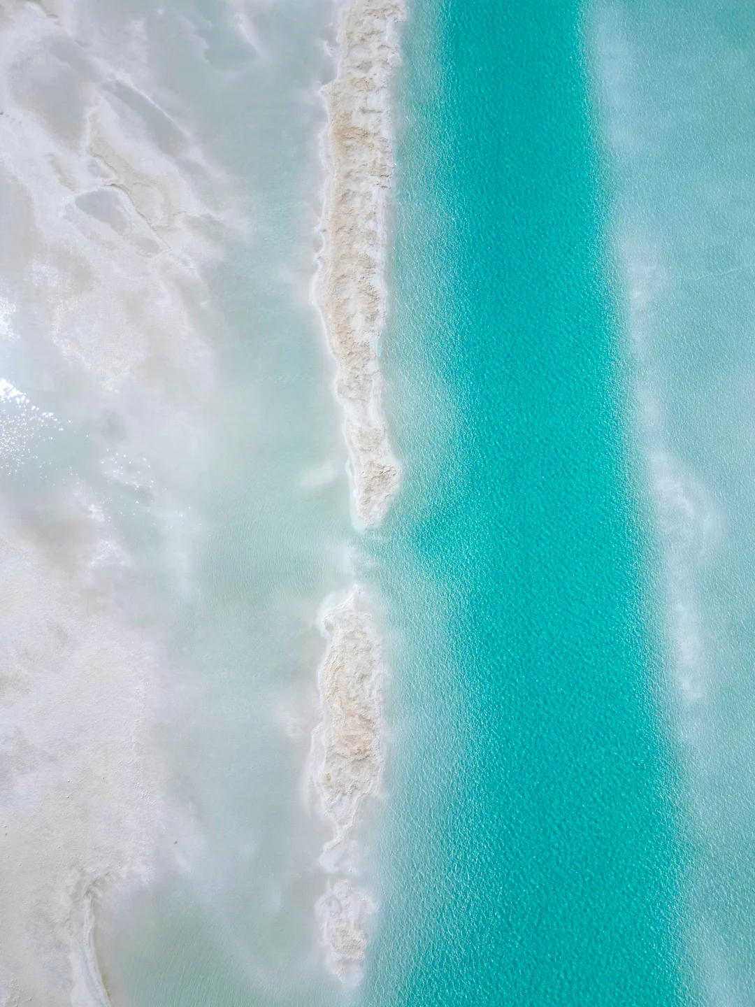 盐结晶形成发光白沙滩,呈现出沁爽薄荷蓝绿色