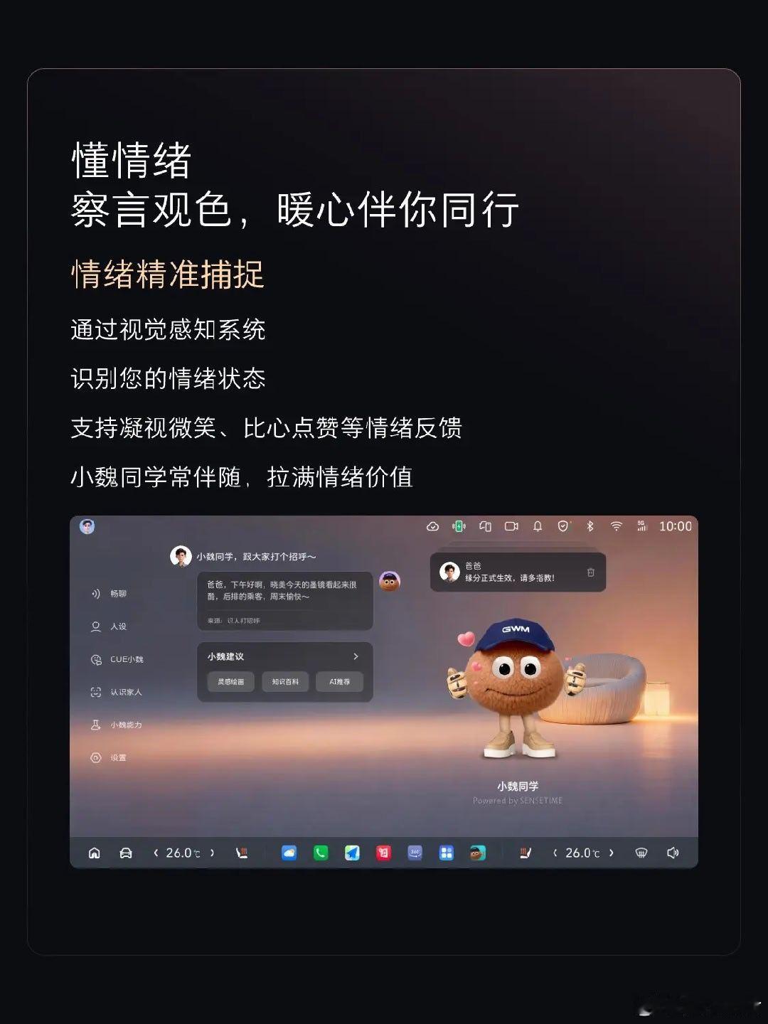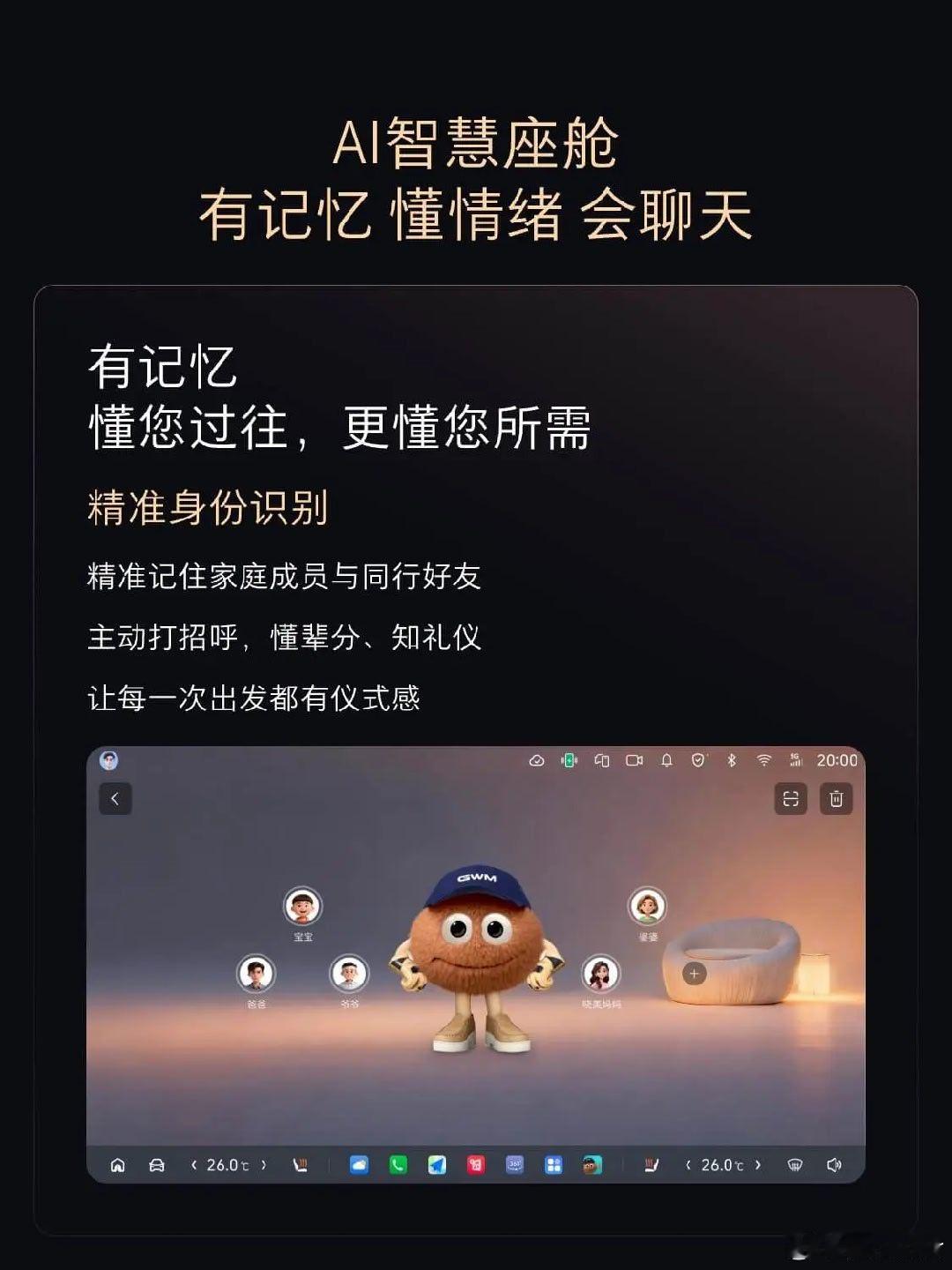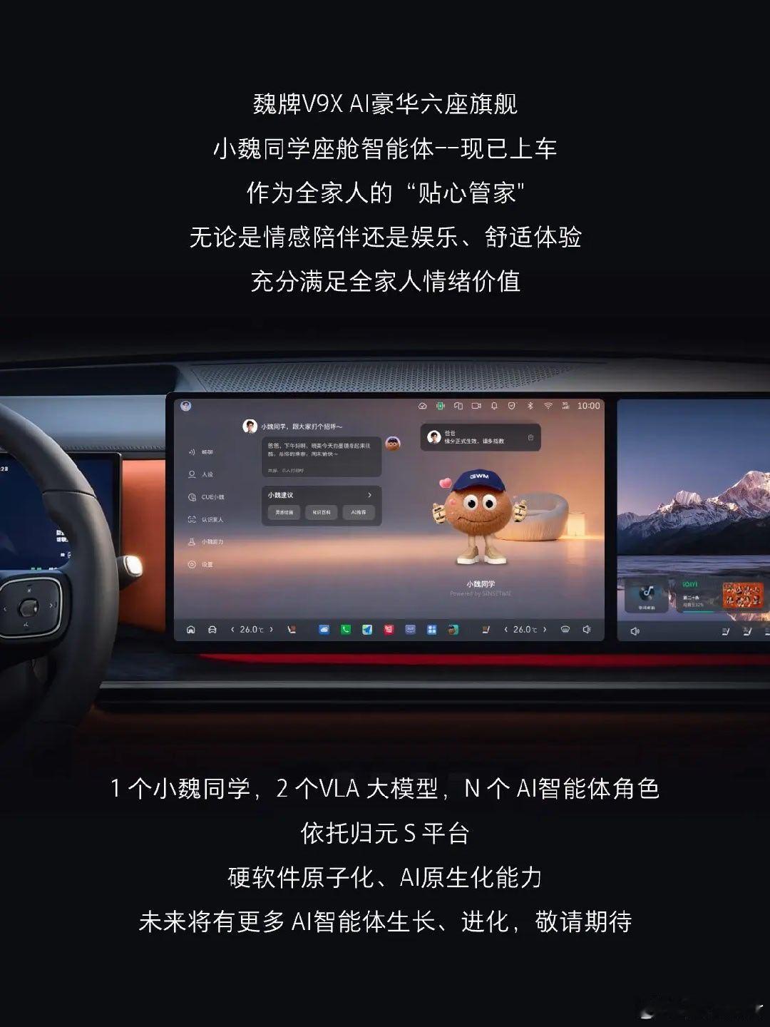 认人识人是AI智能体的照妖镜 汽场全开 大v聊车 输入一个身份原点是跟智能体对话的第一步啊.以最近很火的小龙虾open claw为例,本地安装以后第一句对话让你做一个自我介绍,然后他才开始执行这个身份长期记忆.不过魏牌V9X应该是在本地部署一个语音识别的小模型,把语音对话转换成文字输入给云端的agent,文字输出再转换成语音输出,相比原始版本的文字交流更加人性化,这一点值得一个好评!