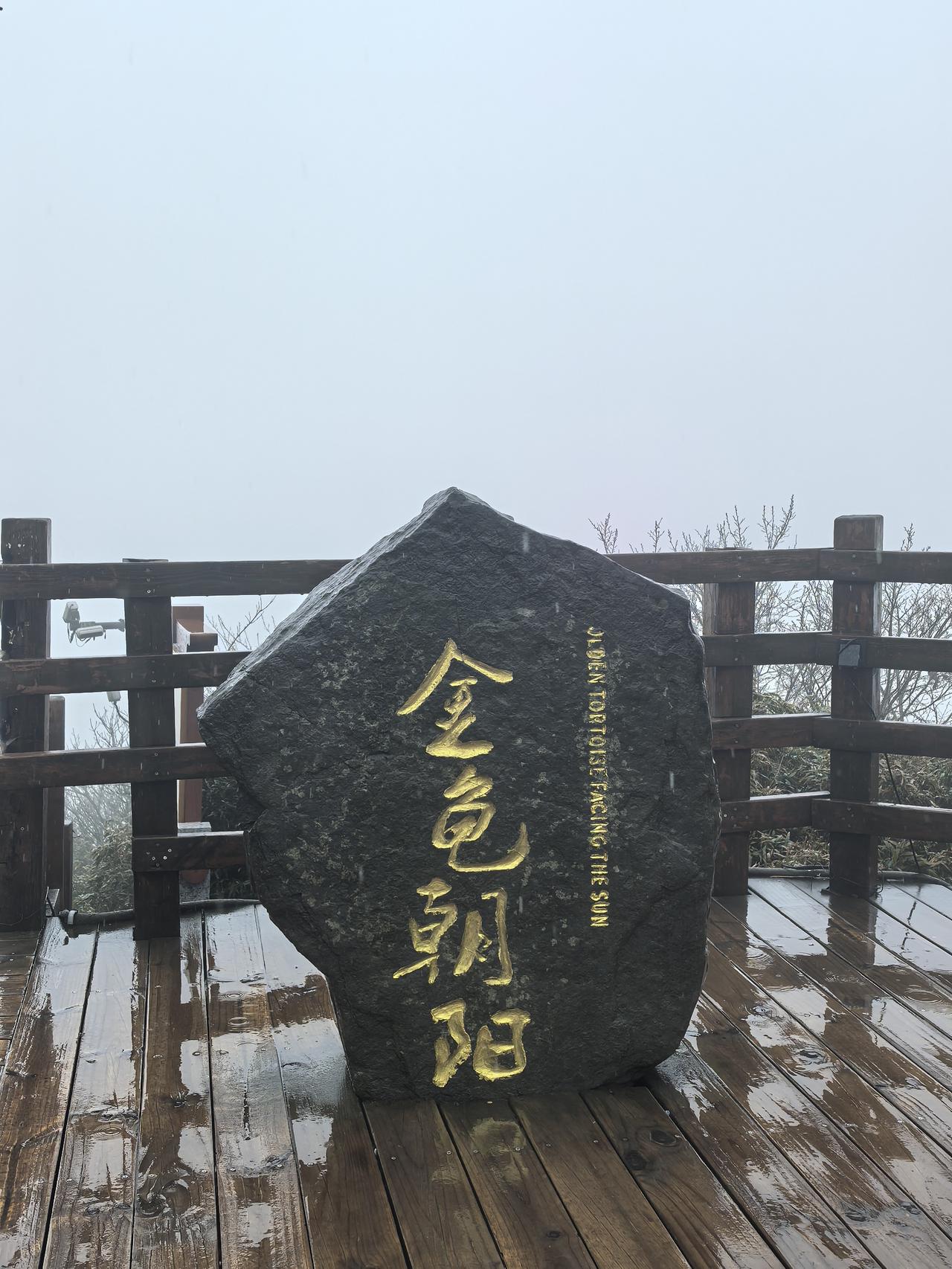 上午十点,缆车穿云而上,缓缓将我们送入山间。抵达药池坝游客服务站后,我们搭乘景区通勤车,每人十元,直奔金佛寺。焚香观寺,静心游览,随后步行至牵牛坪游客服务站稍作休整,简单补充能量。之后继续前往金龟朝阳景点打卡,奈何浓雾深重,茫茫一片,纵是盛名景致,也难窥其真容,只留下满心怅然。