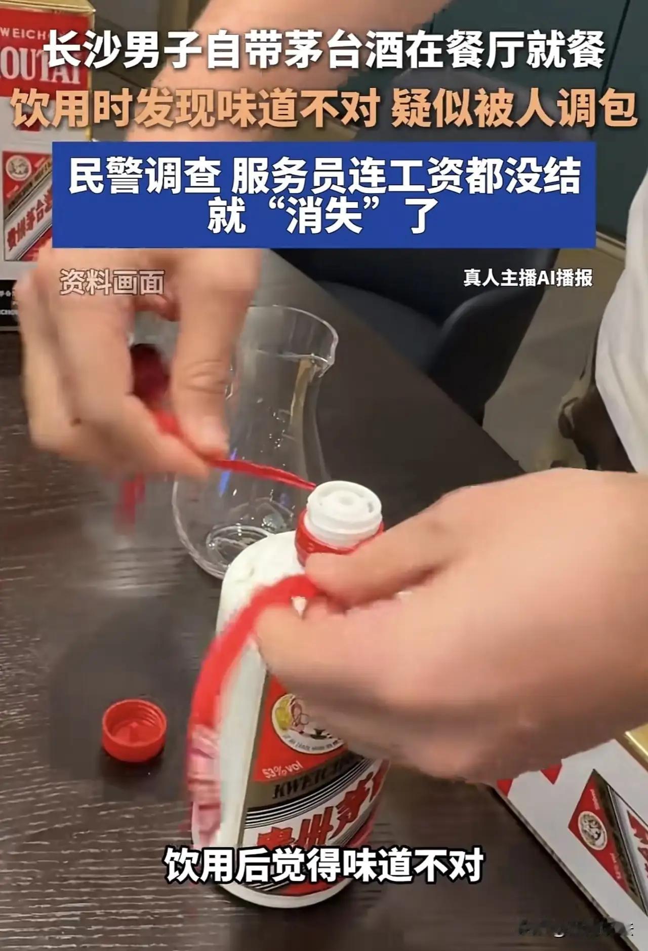 长沙男子带2瓶飞天茅台吃饭,开瓶后直呼味道不对,服务员连夜辞职消失,饭店一句话戳中痛点!