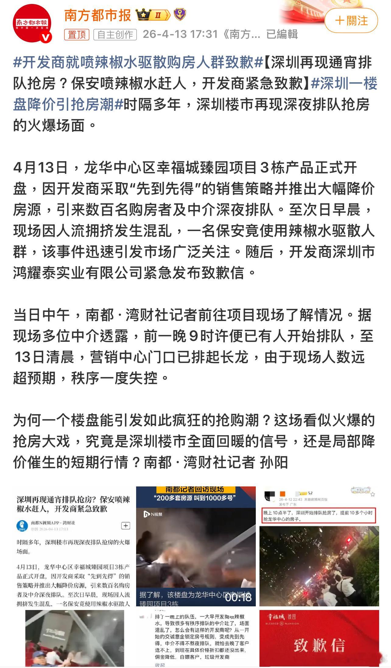 开发商就喷辣椒水驱散购房人群致歉这难道不是开发商的招数吗?还请了专业排队的