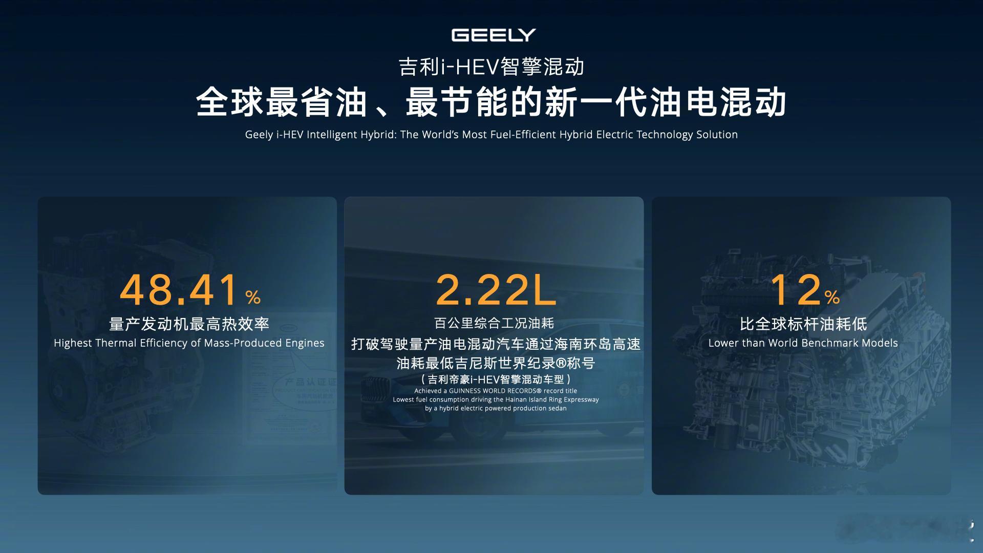 吉利i-HEV智擎混动正式发布,百公里油耗2.22L创吉尼斯世界纪录。