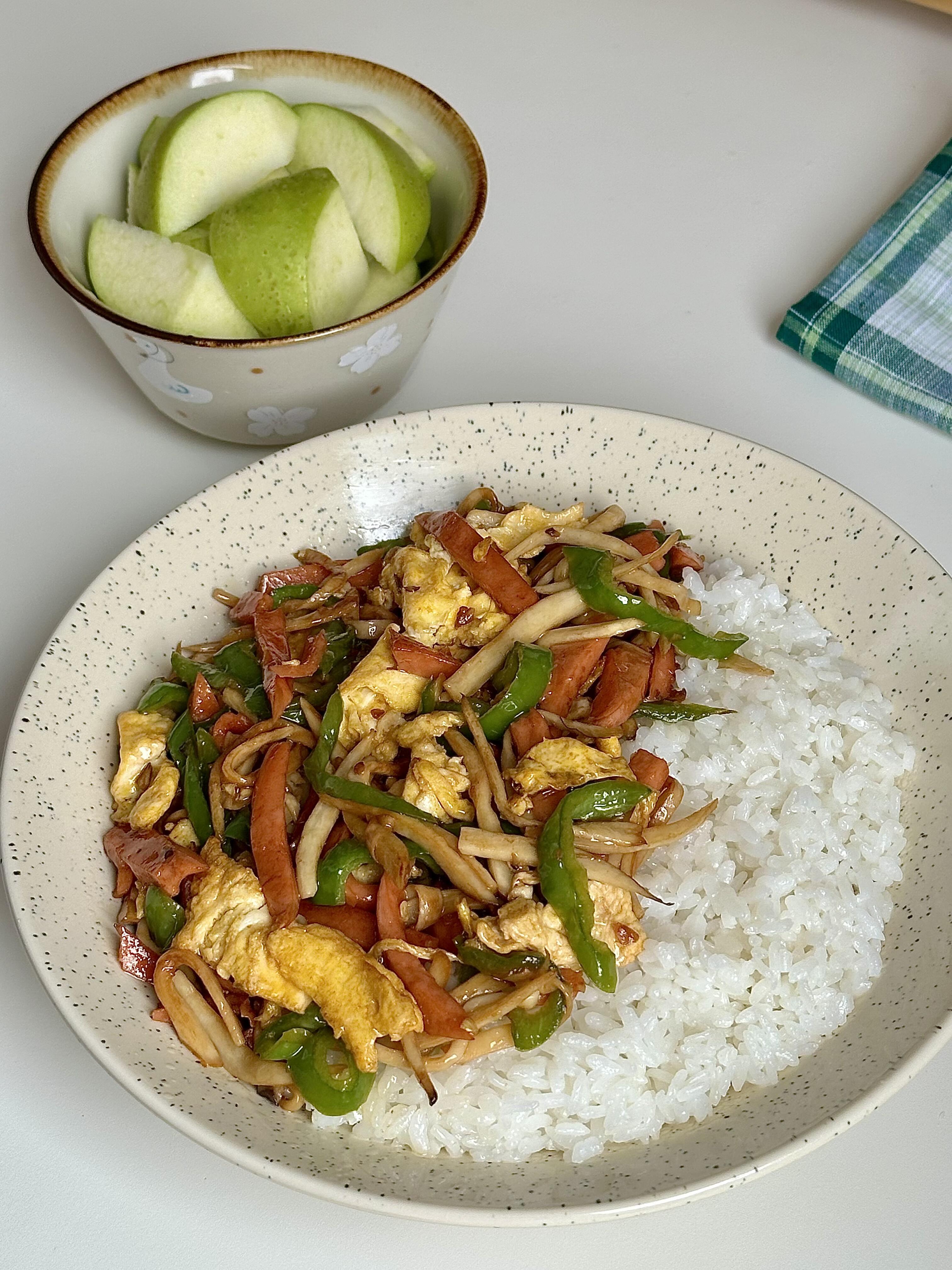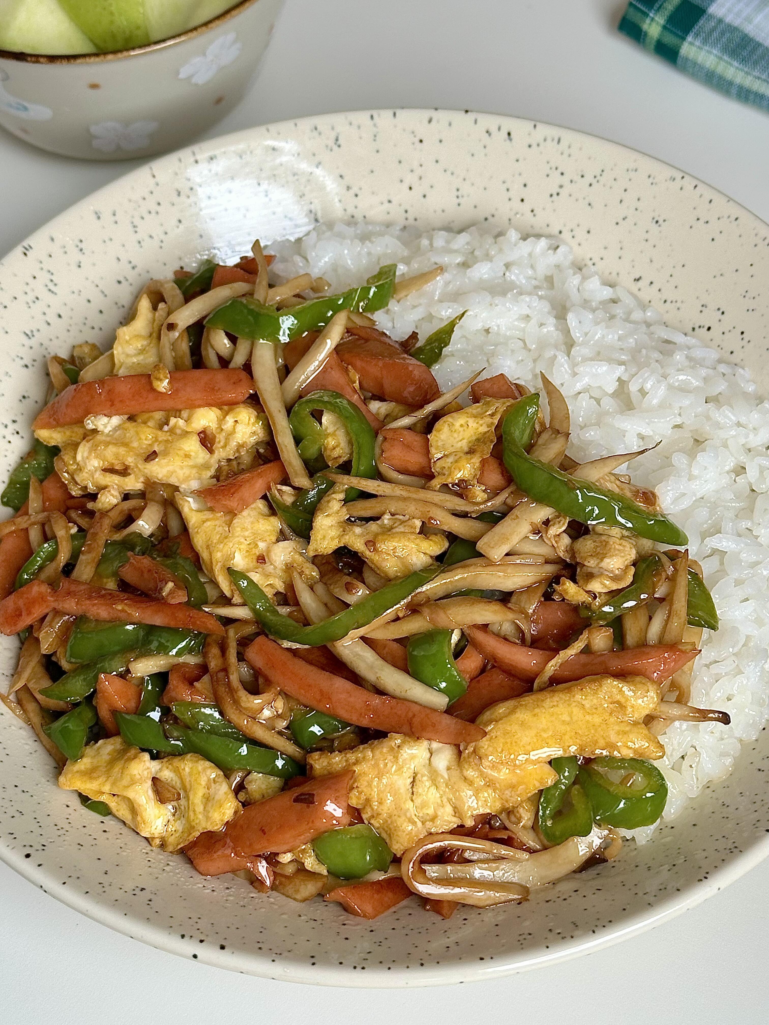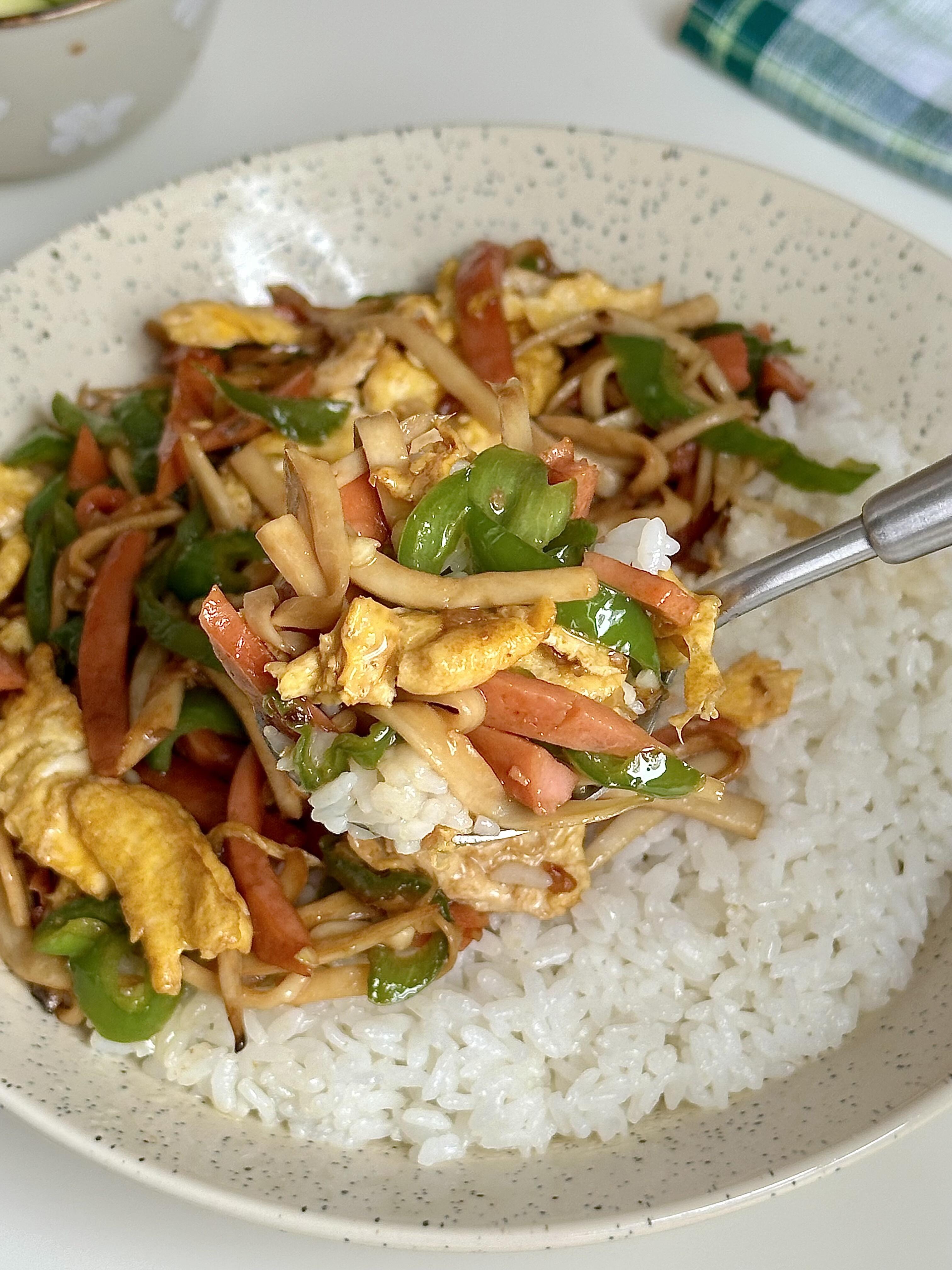 家人们谁懂啊😭 这道杏鲍菇火腿炒鸡蛋,简直是快手下饭界的天花板,5分钟就能搞定,香到舔盘停不下来!