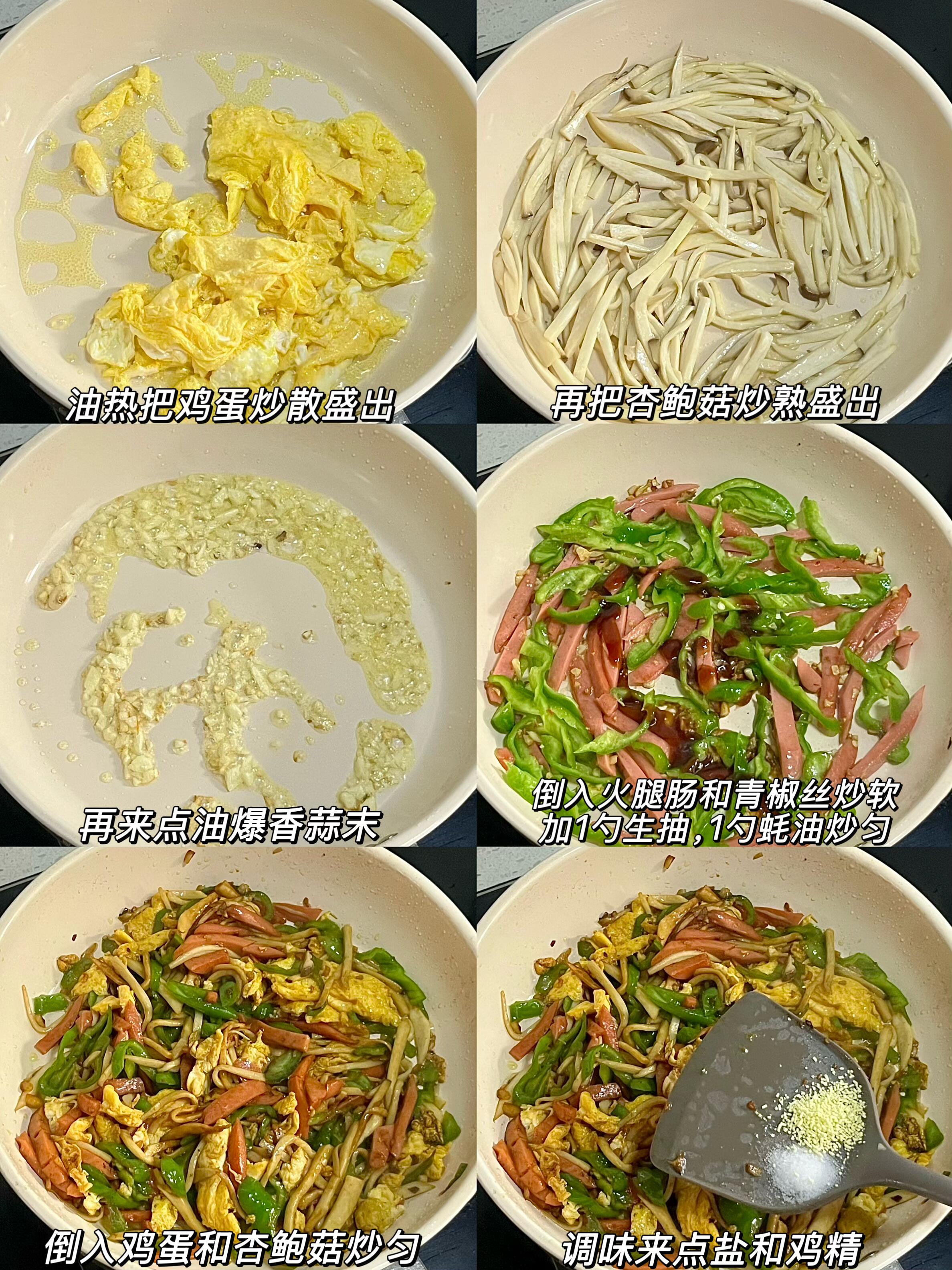 5分钟杏鲍菇火腿炒鸡蛋!香到舔盘,巨下饭