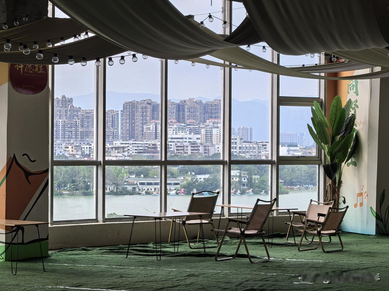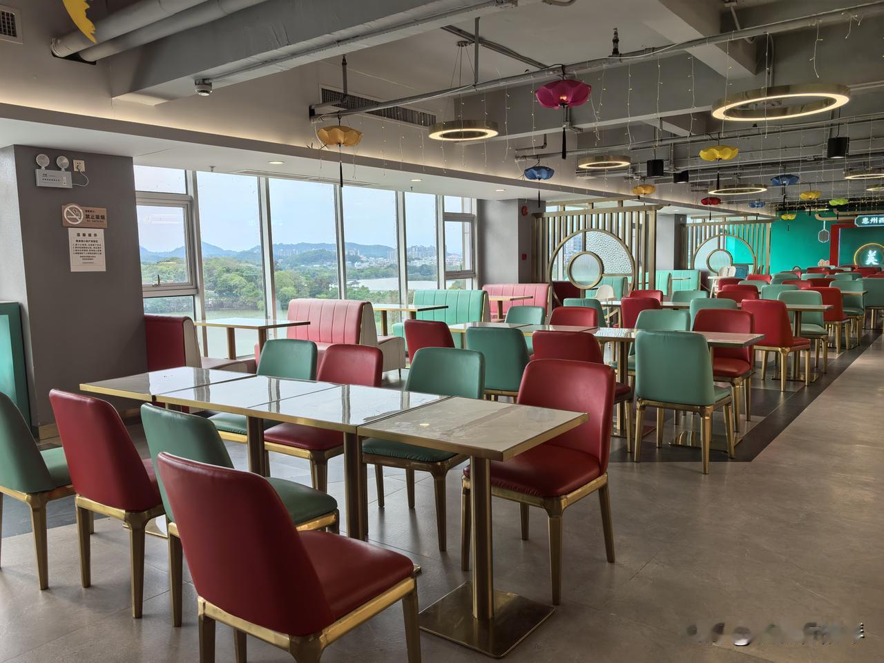 直达电梯🛗到七楼,这里🈶美食小吃,窗边位置视野很好。另外一片也有公共位置,外卖拿来这里吃也行,窗外就是惠州西湖,远眺泗洲塔~~