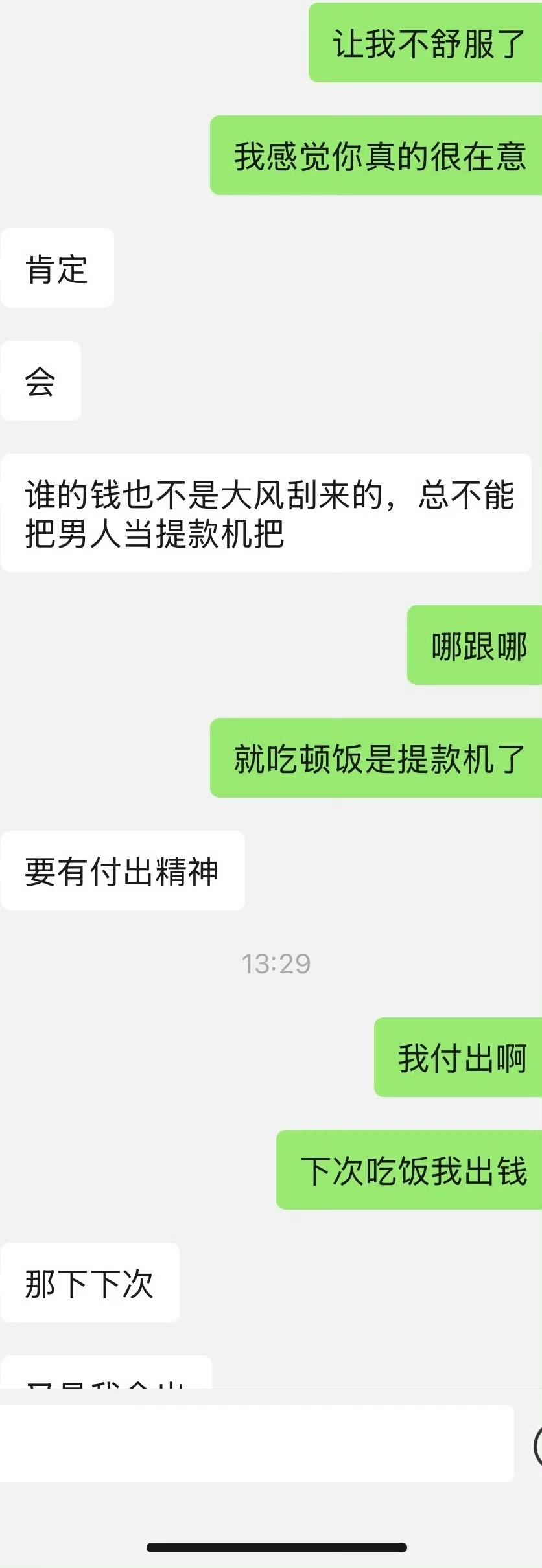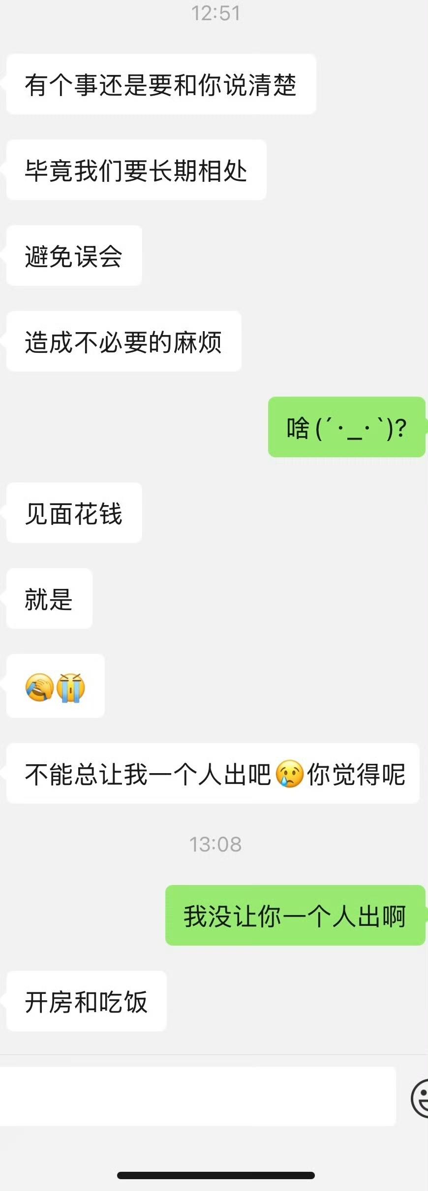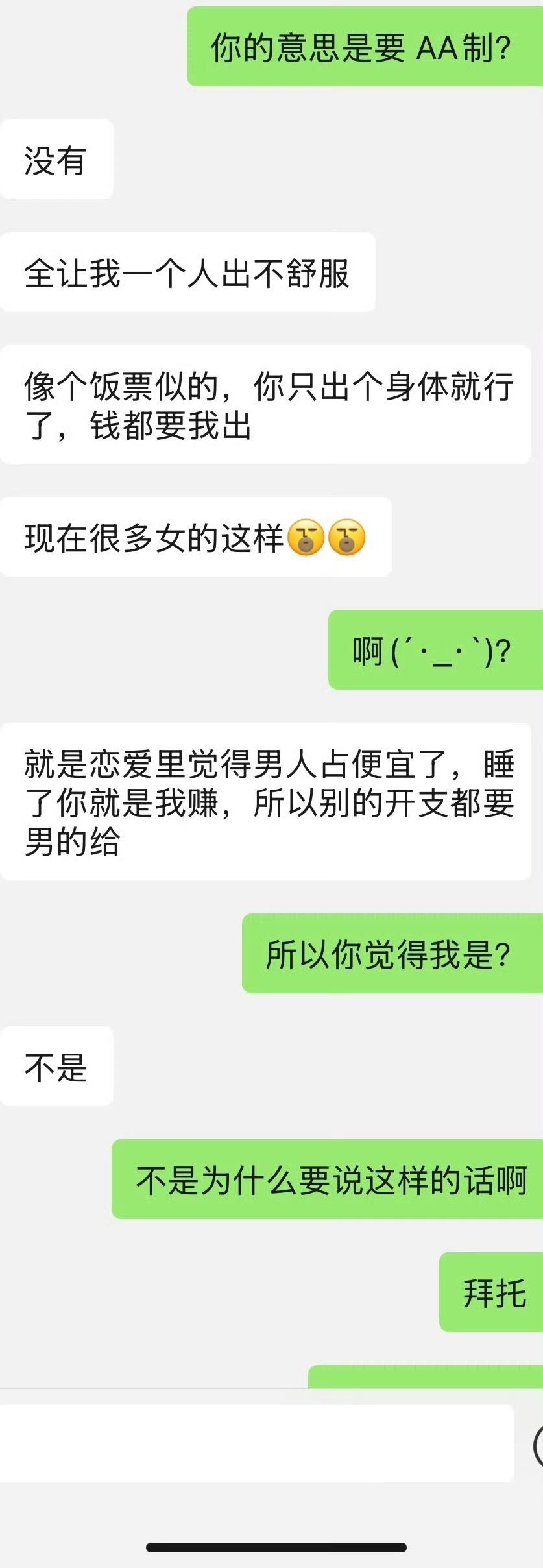 女子吐槽和男朋友出去住酒店,本来开开心心,事后男朋友却在微信上面和她说,以后酒店的钱他付,吃饭的钱就由女子来掏。说出来约会不能让他一个人掏钱,女子觉得不可思议。刚刚和男朋友确定关系,没想到他就整这么一出。他和以前任约会,大部分都是前任掏钱,她偶尔出一次两次钱。没想到新交的男友却如此的斤斤计较,每次连一两百两三百的费用,就受不了了。对于这样小气算计的男朋友,女子觉得难以接受。
