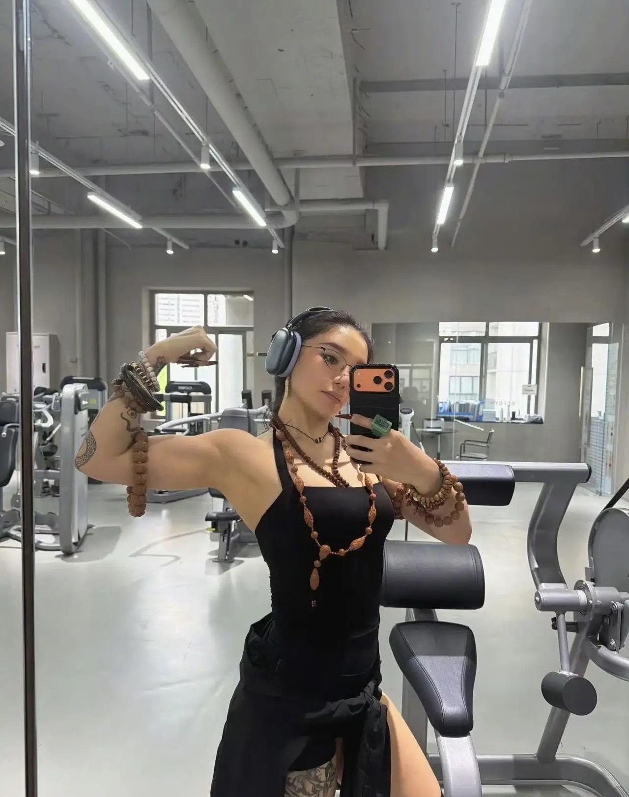 江映蓉这是在晒身材还是在盘串啊,头次见女明星往身上搁这么多手串,难道不影响健身吗