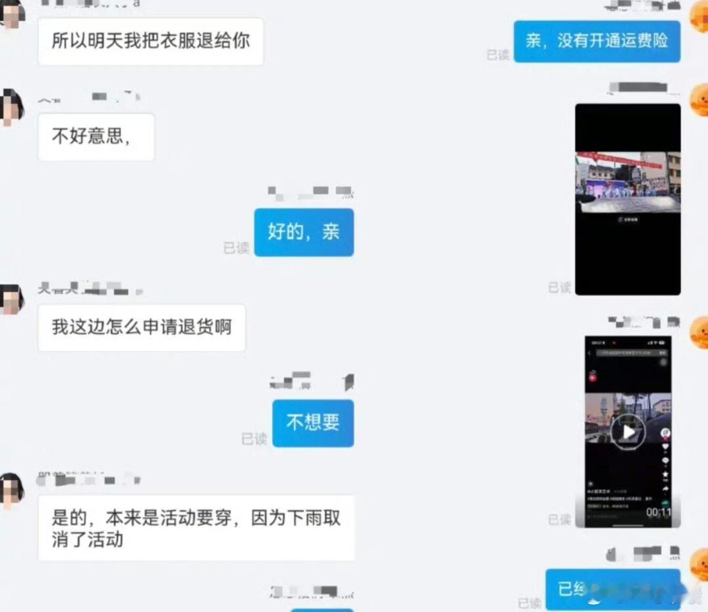 演出服遭集体退货家属称表演取消艺术节圆满落幕,商家含泪收尾。穿完演完脏完,卡点七天无理由集体退货,主打一个白嫖式表演。校方:家长行为,与我无关。建议下次直接租,别把网购当免费租赁平台,吃相太难看了。