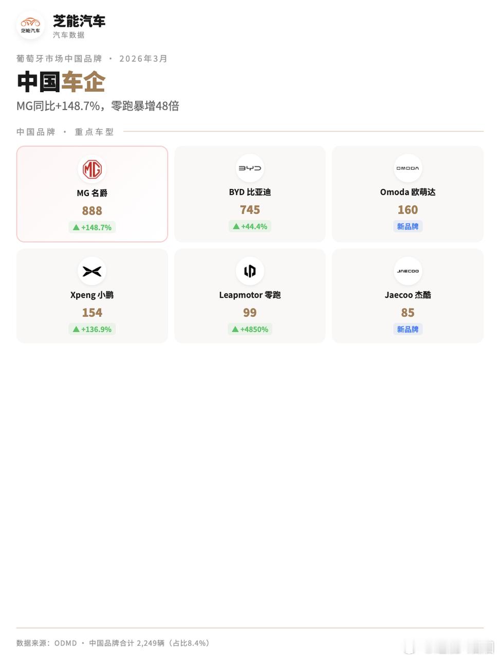 2026年3月,葡萄牙新车销量达到26,680辆,同比增长8.6%;一季度累计64,060辆,同比增长9.4%。