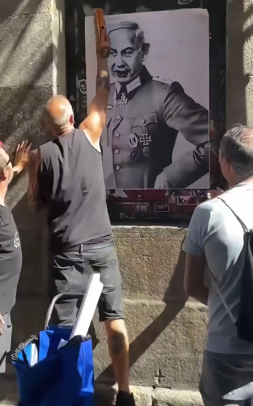 西班牙老百姓把以色列总理内塔尼亚胡画成了二战时德国纳粹的样子,把海报贴满了大街小巷,可见底层老百姓对以色列有多厌恶。