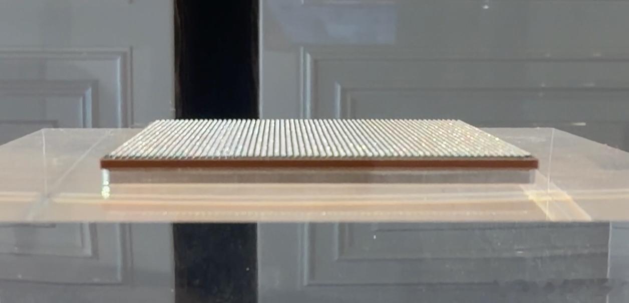 据说这薄薄的一片里有500 亿个晶体管,这我要是拿锤子砸开一个个数,数到死也数不