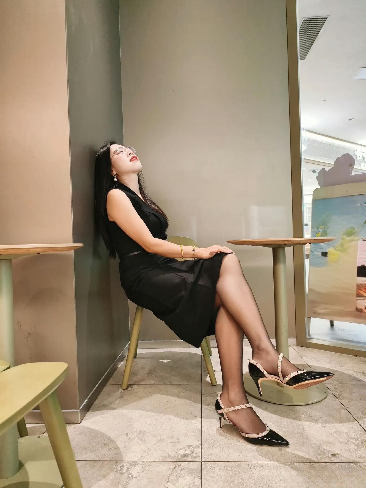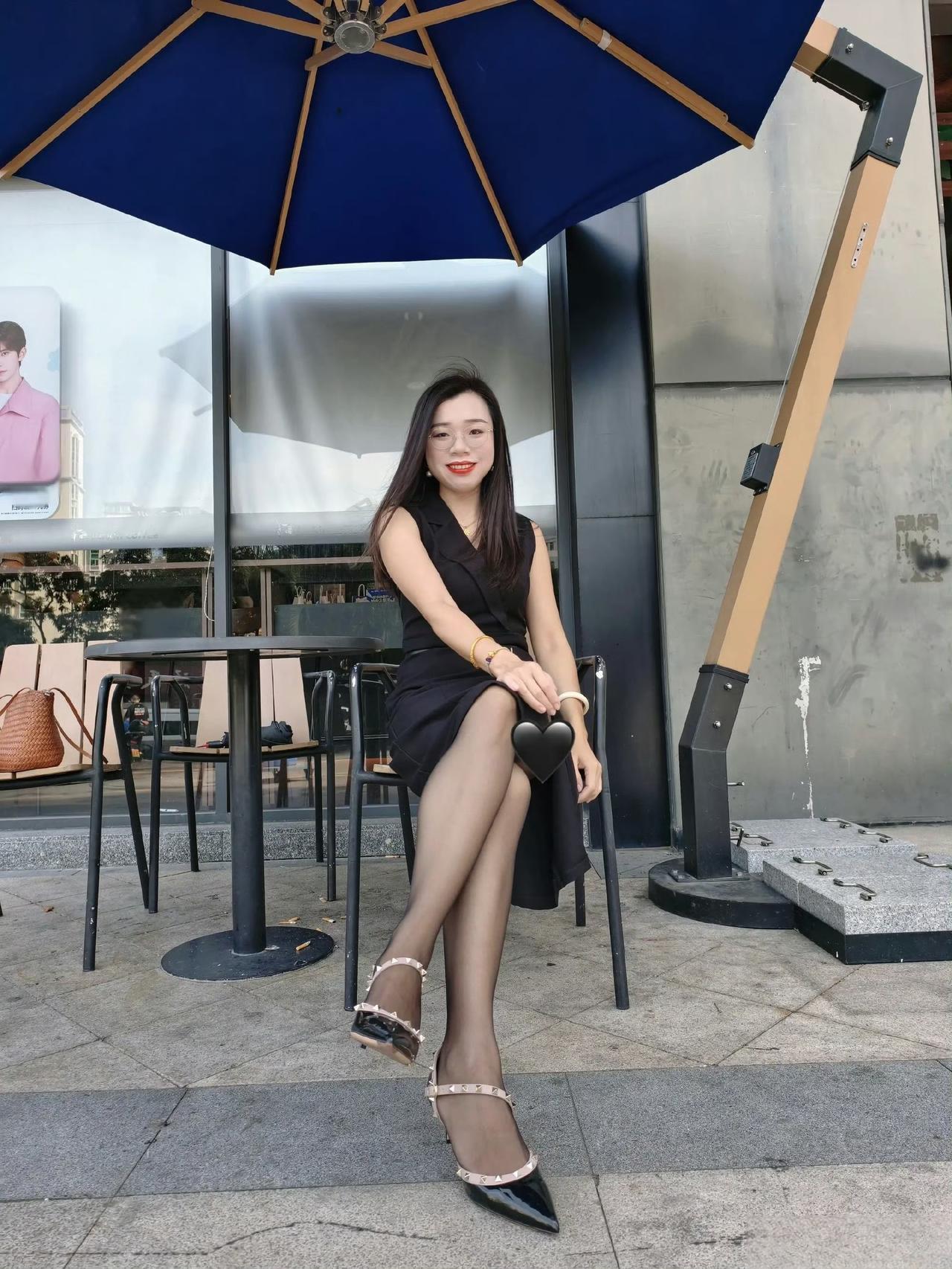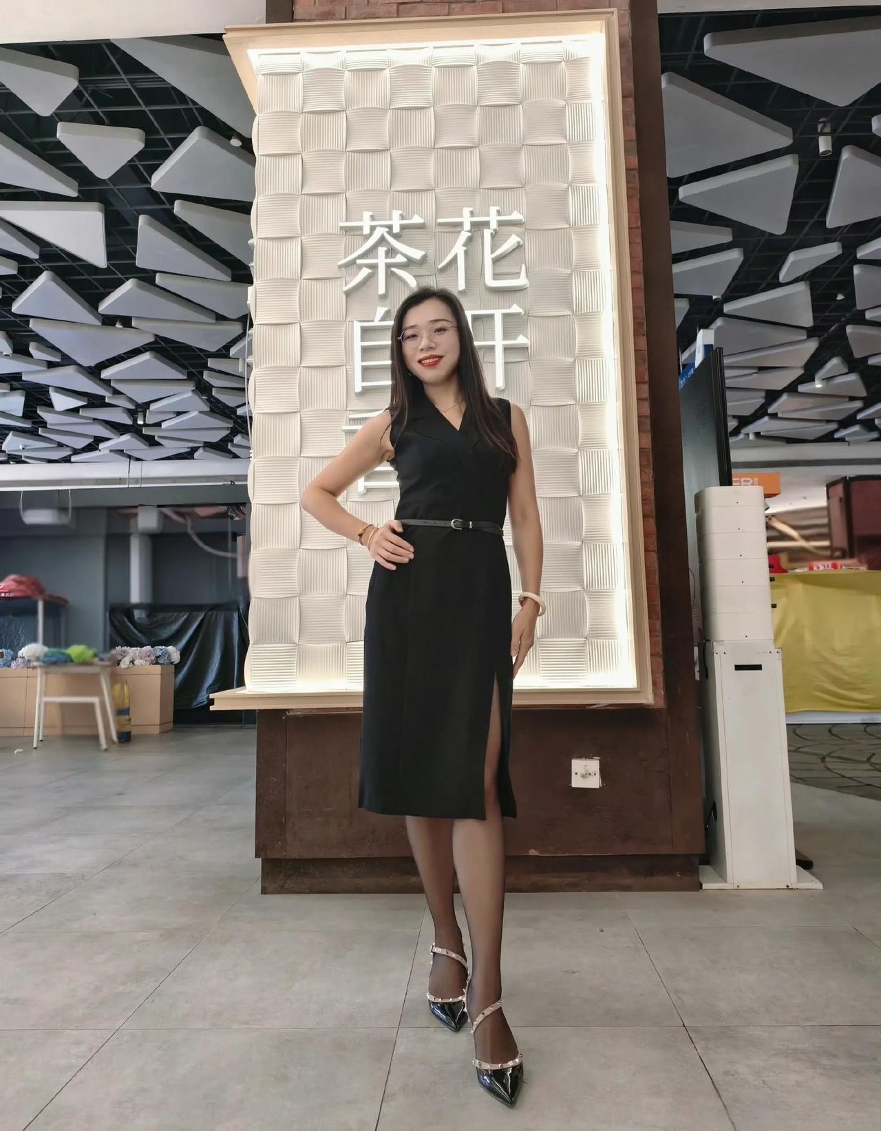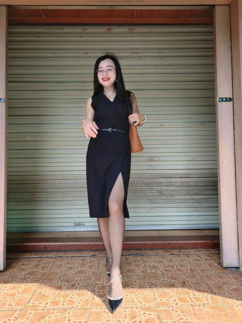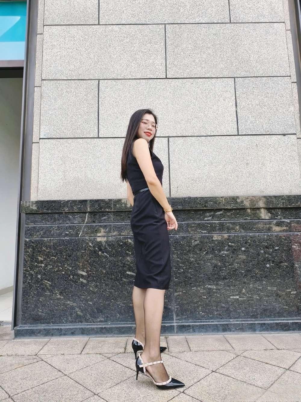 - 单品选了黑色无袖收腰连衣裙,V领+收腰版型显身材,侧边开叉细节增加魅力,无袖设计适配温和天气,简约又利落;