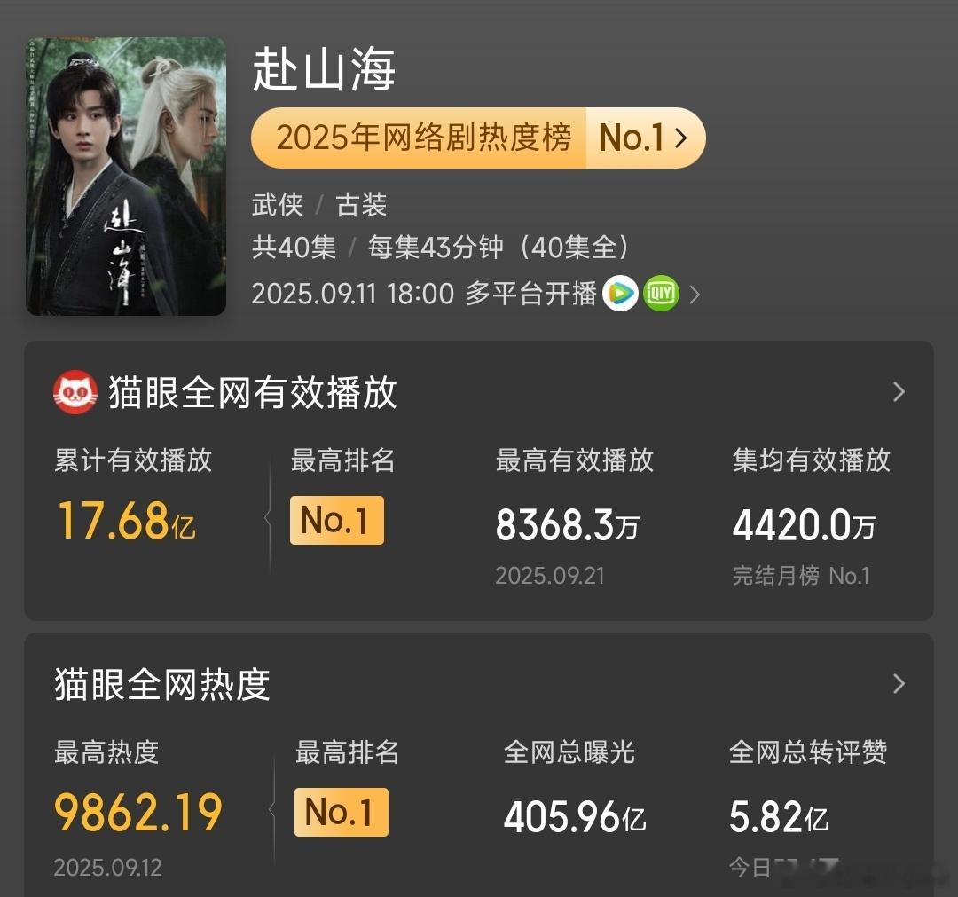 再看成毅,《赴山海》至今依然是完结月榜No.1,《天地剑心》万剑穿心名场面大出圈,我儿曹植成为名梗,《长安二十四计》全员上桌,每个人都有高光,结尾幻视中国近代史的解读更是在各大平台流转,《两京十五日》持续雄踞待播榜第一,郑州剧宣,自发到场上千人,活人粉盘基础可见一斑,商业价值更是一枝独秀,不必多言,一句“含毅量”胜过千言万语。