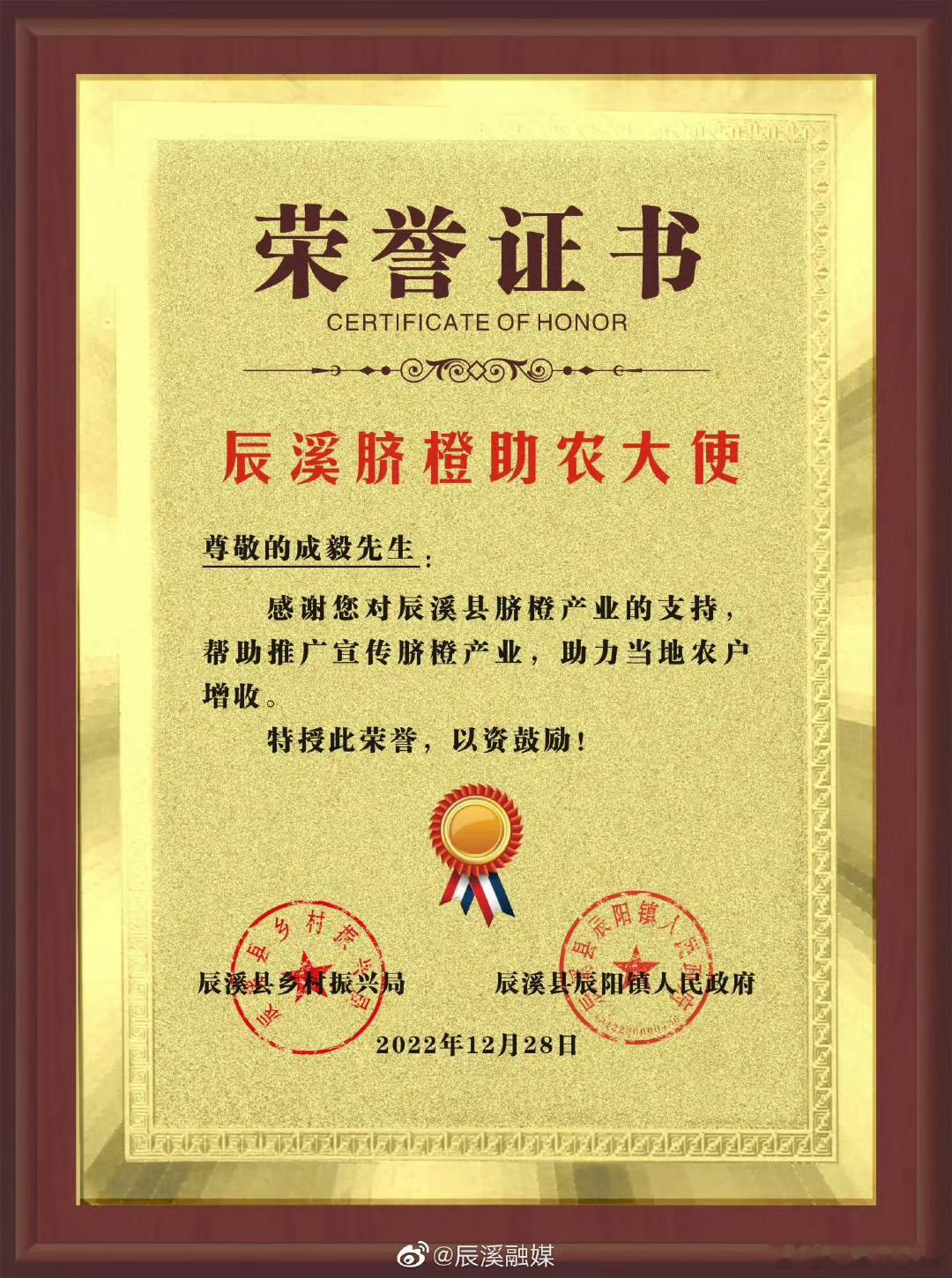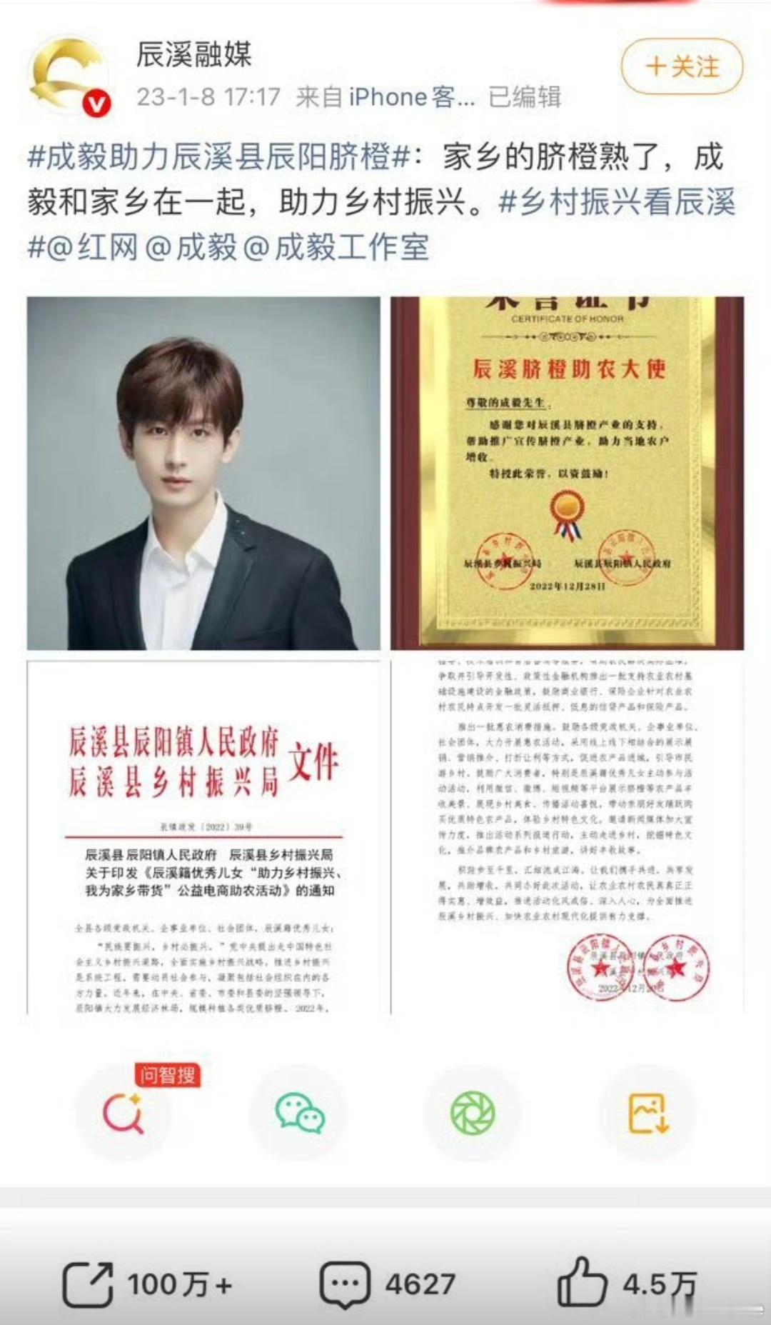成毅我在微博聊电影 成毅多次助力家乡农产品