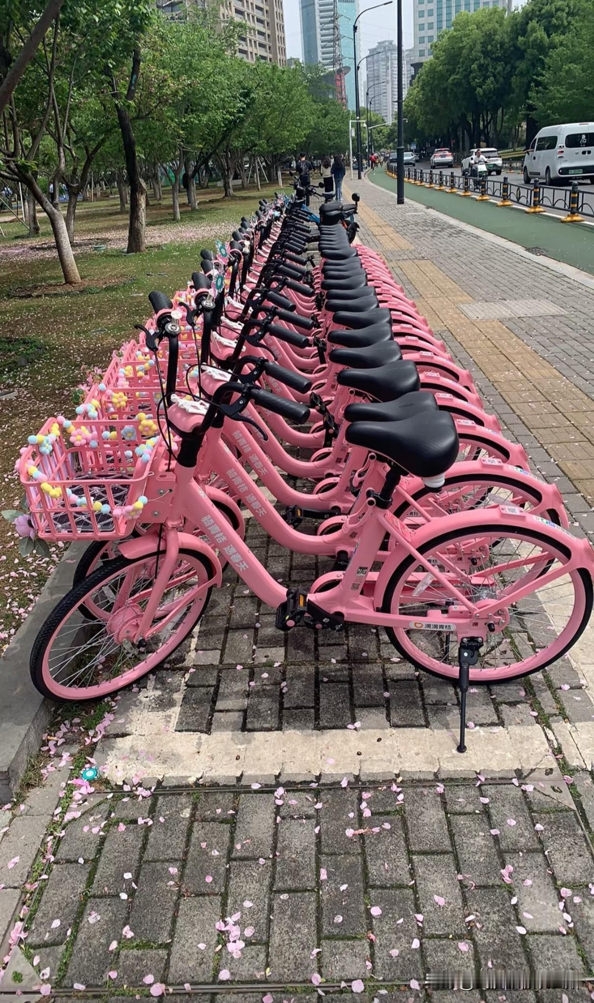 这个春天,连共享单车都太宠武汉了吧!这整齐的限定紫,樱花粉也太好看了吧!