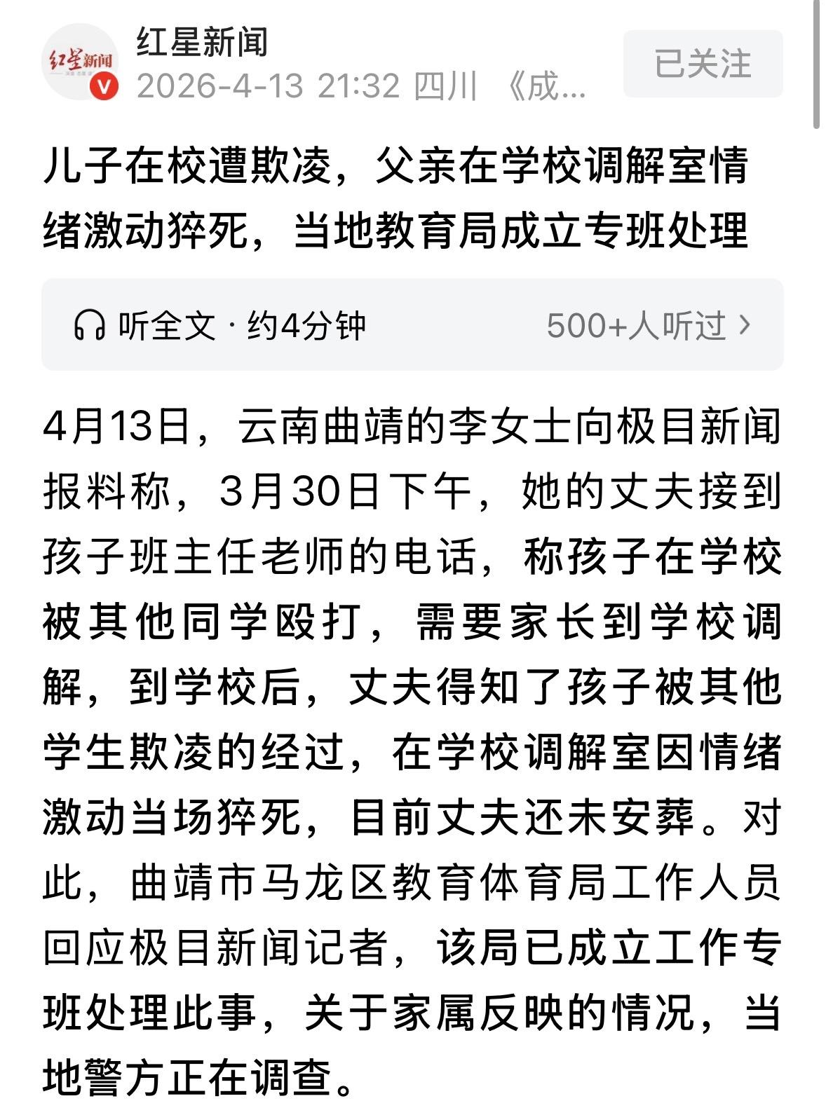 云南曲靖,夫妻2人接到儿子在校被殴打的消息后,连忙赶到学校,听说儿子在校时不仅被