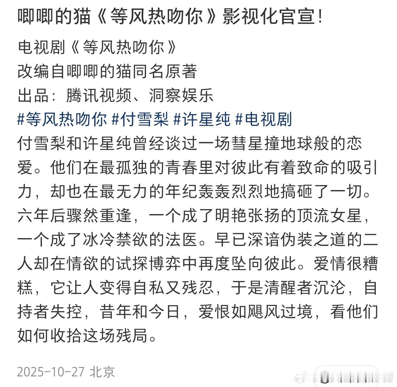 丁禹兮下部剧是等风热吻你