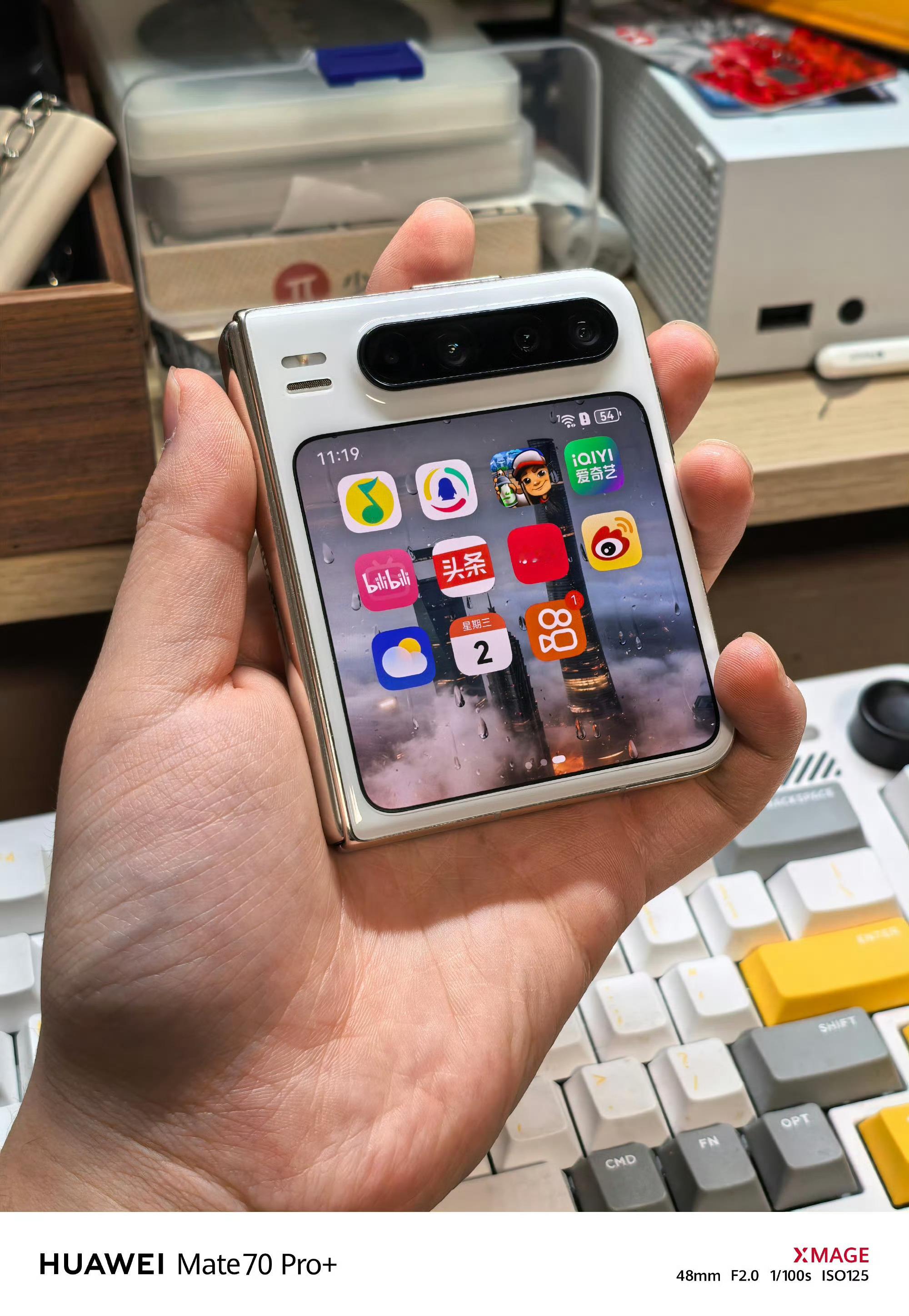 而长期来看,我投阔折屏一票,之前在做华为Pura X的视频我就有提到过,我觉得目前阔折叠的形式确实是目前体验最好的,合上,有小折叠的轻便手感;展开,又是大折叠那种 16:10 的黄金比例,这种体验确实很不错。