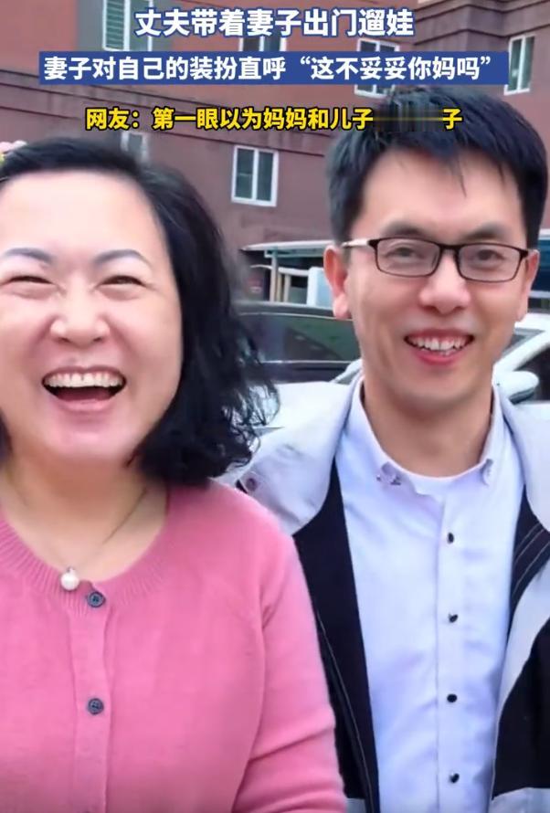扎心了!男子带着妻子出门遛娃,没成想,两人同款出镜后,网友却把关注点放在了妻子的装备和容貌上,认为她过于显老,更像是男子的妈妈,就连妻子本人,都忍不住调侃自己。