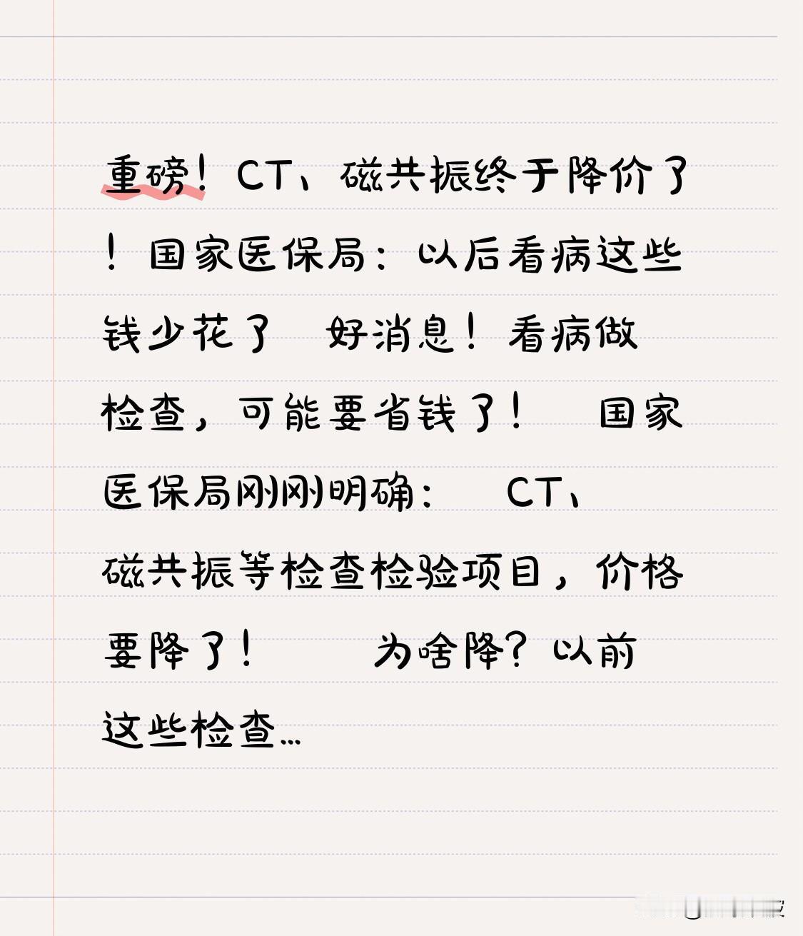 重磅!CT、磁共振终于降价了!国家医保局:以后看病这些钱少花了 好消息!看