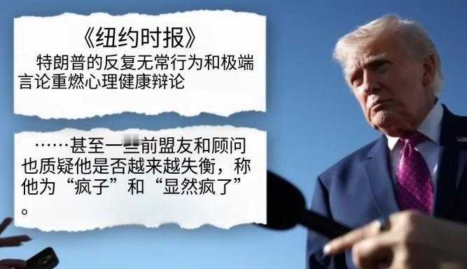 《纽约时报》最新报道直接点破:他言行越来越极端、前后矛盾,精神状态争议再次发酵。前盟友私下说他“像疯子”“明显失衡”,八年前还被当个性,如今只剩不可理喻。