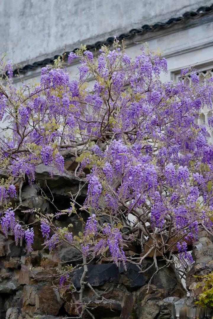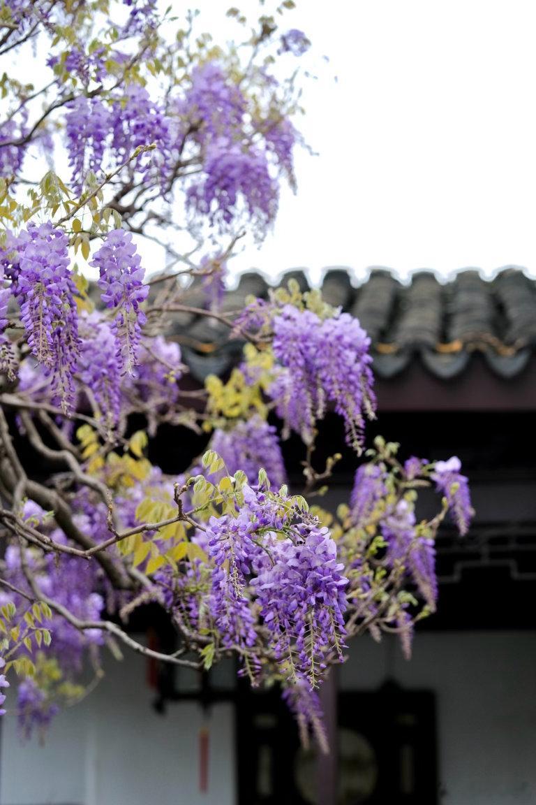 苏州的春日,被这满架紫藤狠狠治愈。白墙黛瓦间,紫花如瀑垂落,哪怕是细雨绵绵的天气