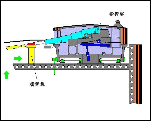 面对这一难题,工程师们最终想出了一套可行的解决方案:将主炮的装填系统设置在甲板下方,仅在甲板上预留两个装填孔。每次装填时,先转动炮塔、降低炮口,使其对准装填孔,随后甲板下方的装填手操纵系统,将炮弹推送至炮口完成装填。这样一来,装填系统便与弹药库、动力系统一同位于甲板下的装甲堡内,获得了与火炮核心部件同等的可靠防护。
